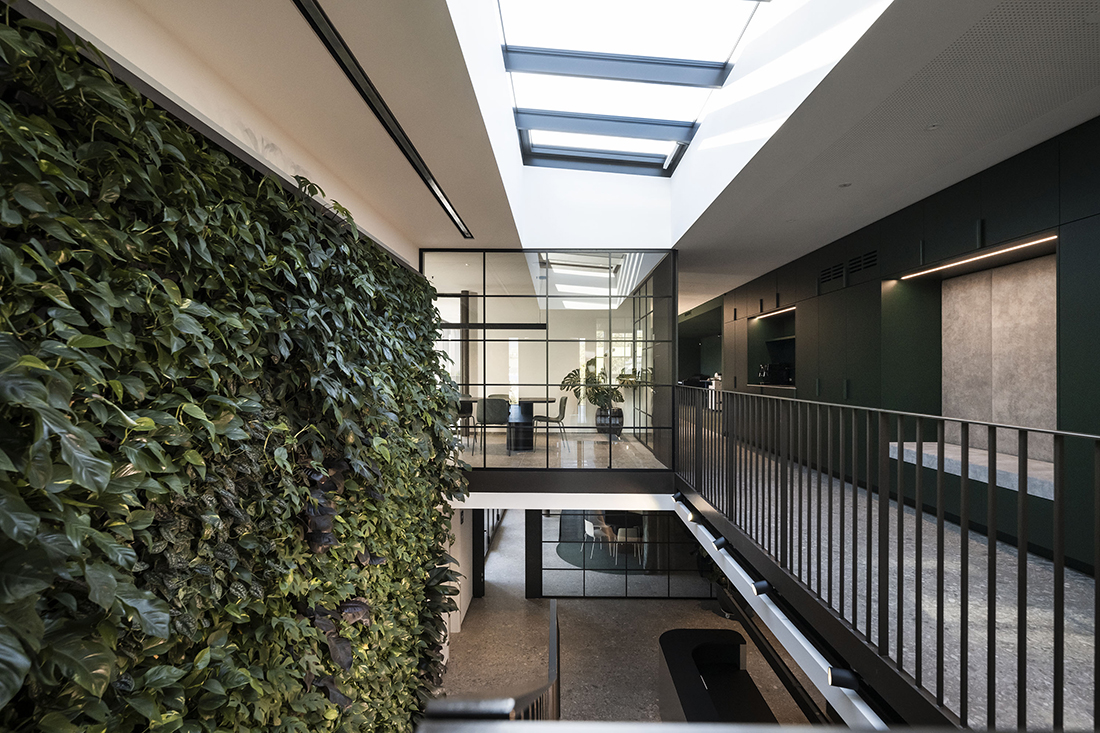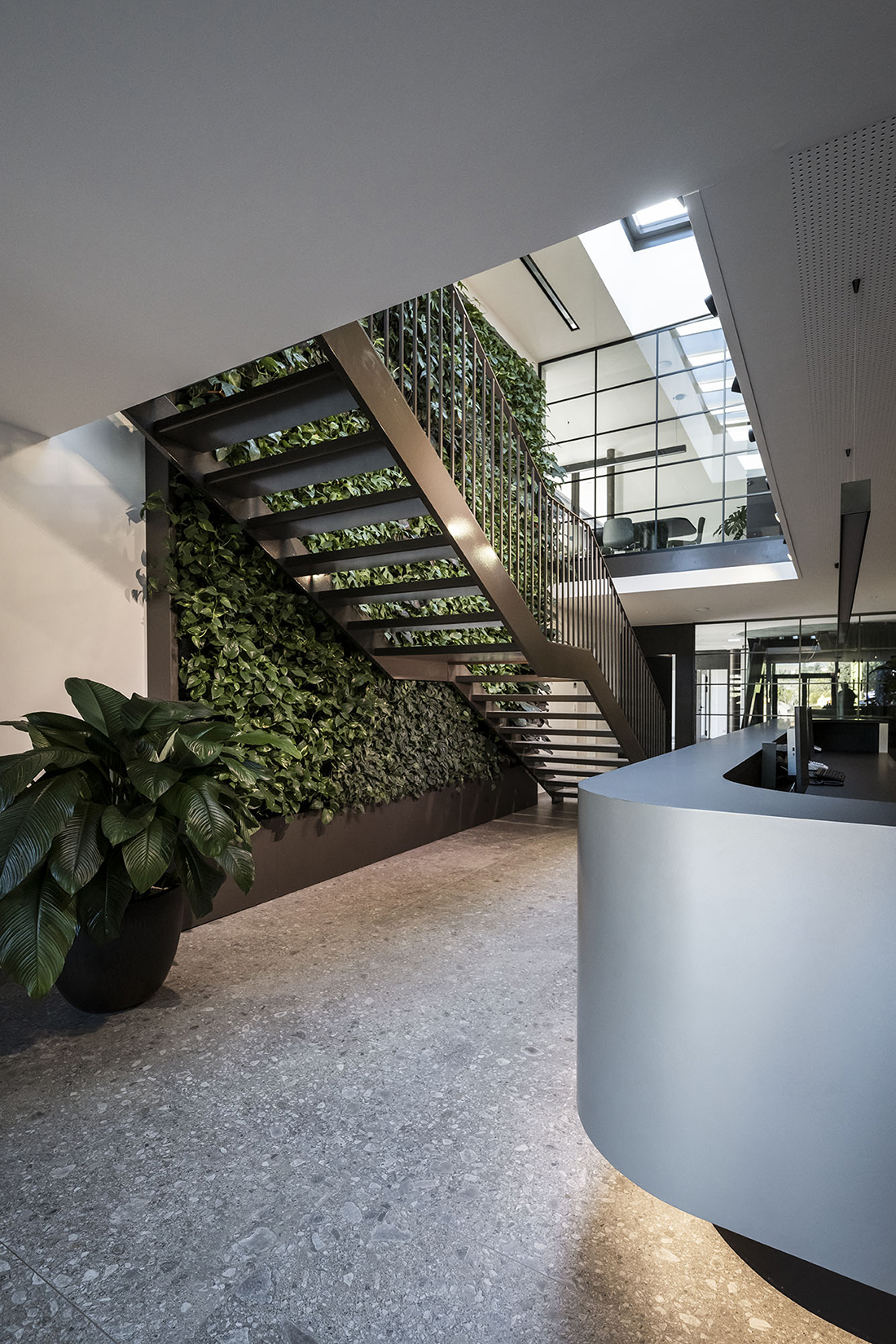 In front of the original glass façade, a second, living “green skin” was erected. The green façade is more than just a visual highlight; it symbolizes the sustainable commitment of the Platter Garden Center and integrates nature into the architecture. The harmonious fusion of nature and modern architecture creates an inspiring atmosphere that delights both employees and visitors alike. The Platter Garden Center sets new standards in the integration of architecture and nature.