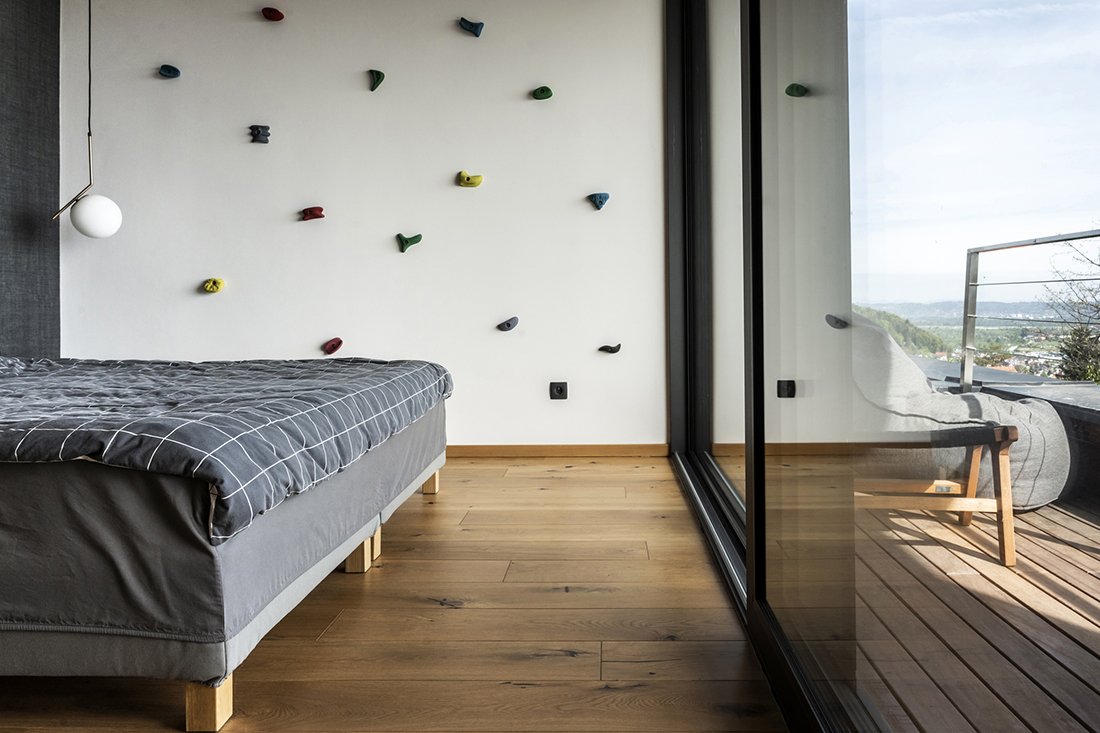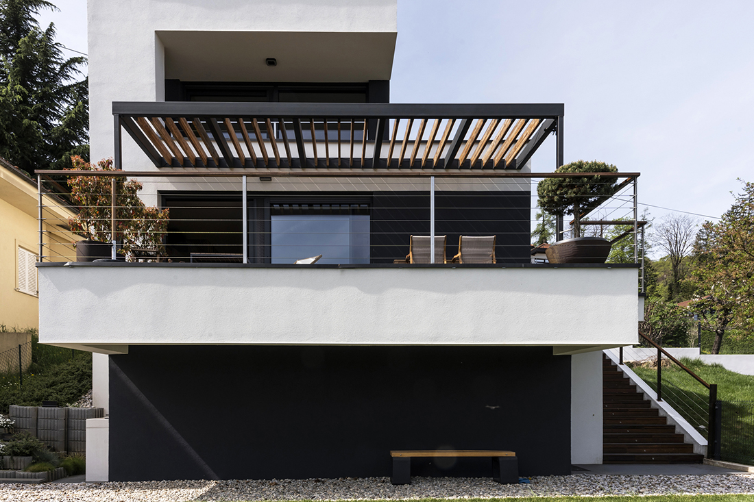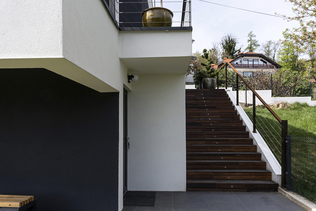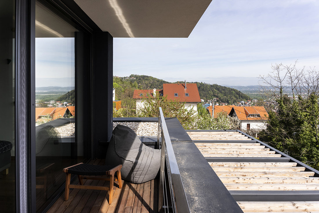 This pocket-sized villa, situated on steep terrain and spanning three floors, offers breathtaking views of Samobor below and Zagreb in the distance. Located in a densely built area, this replacement family house seamlessly integrates into its surroundings, exemplifying how to build effectively on a very small plot.
