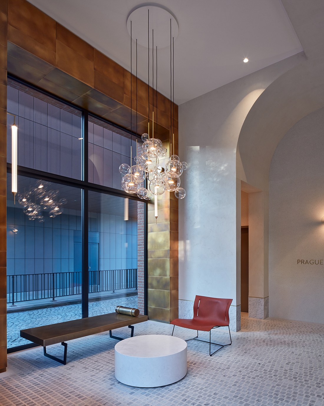 Situated along the Vltava River, Prague Marina Nova features 6 commercial units and 151 apartments complemented by 5 distinct reception areas. The interior design of these residential lobbies adopts a storyteller’s approach, weaving a narrative within the architectural spaces that pays tribute to the borough’s unpretentious architecture and its people.