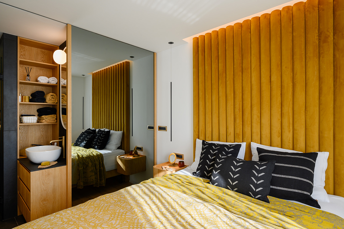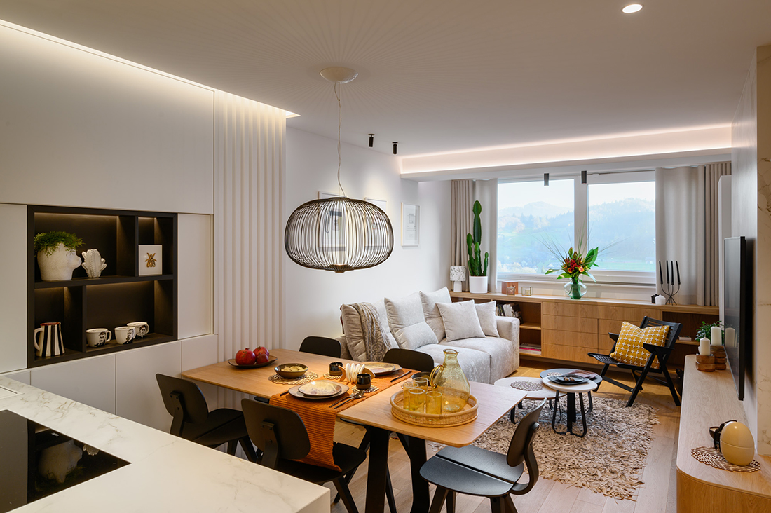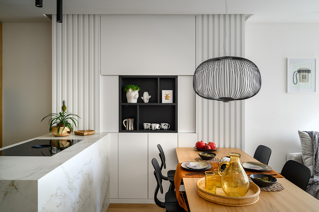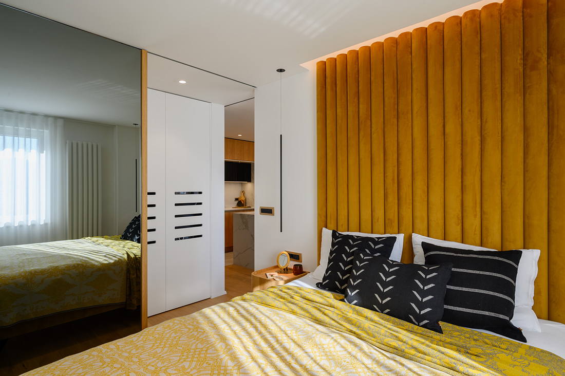 We recently completed the renovation of a smaller apartment in a block built in 1977. The project included a full upgrade of electrical and plumbing systems, along with a slight redesign of the floor plan. All furniture was custom-made to maximize the efficient use of space while ensuring a comfortable living environment for the young couple moving in. This renovation showcases how thoughtful updates can breathe new life into aging housing stock, making it suitable for modern living.