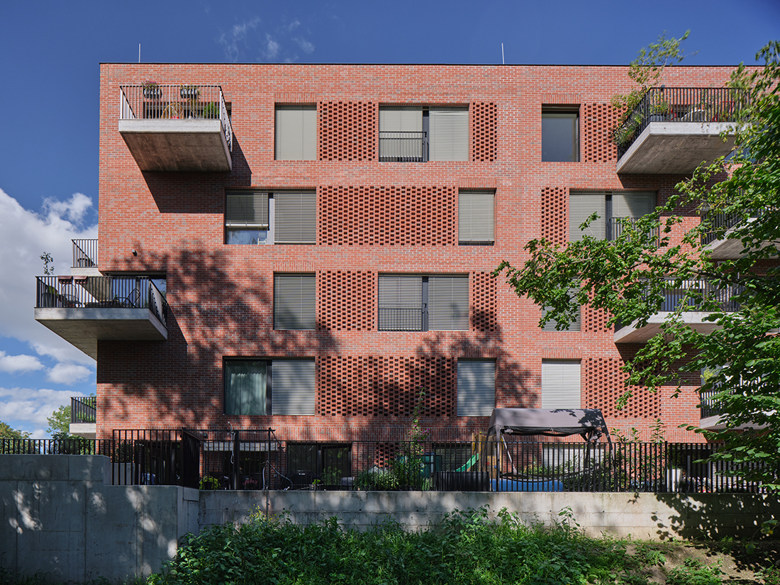 The site opens toward the river with a restored mill race and new bridge. The conversion follows a reuse principle, emphasizing sustainability, green roofs, and rainwater management. Historical structures were cleaned and enhanced with contemporary architectural layers of light brick, glass, and black metal. Developed in collaboration with the investor, Auböck Bau, the project carefully blends industrial character with modern living while preserving the strong genius loci of the site.