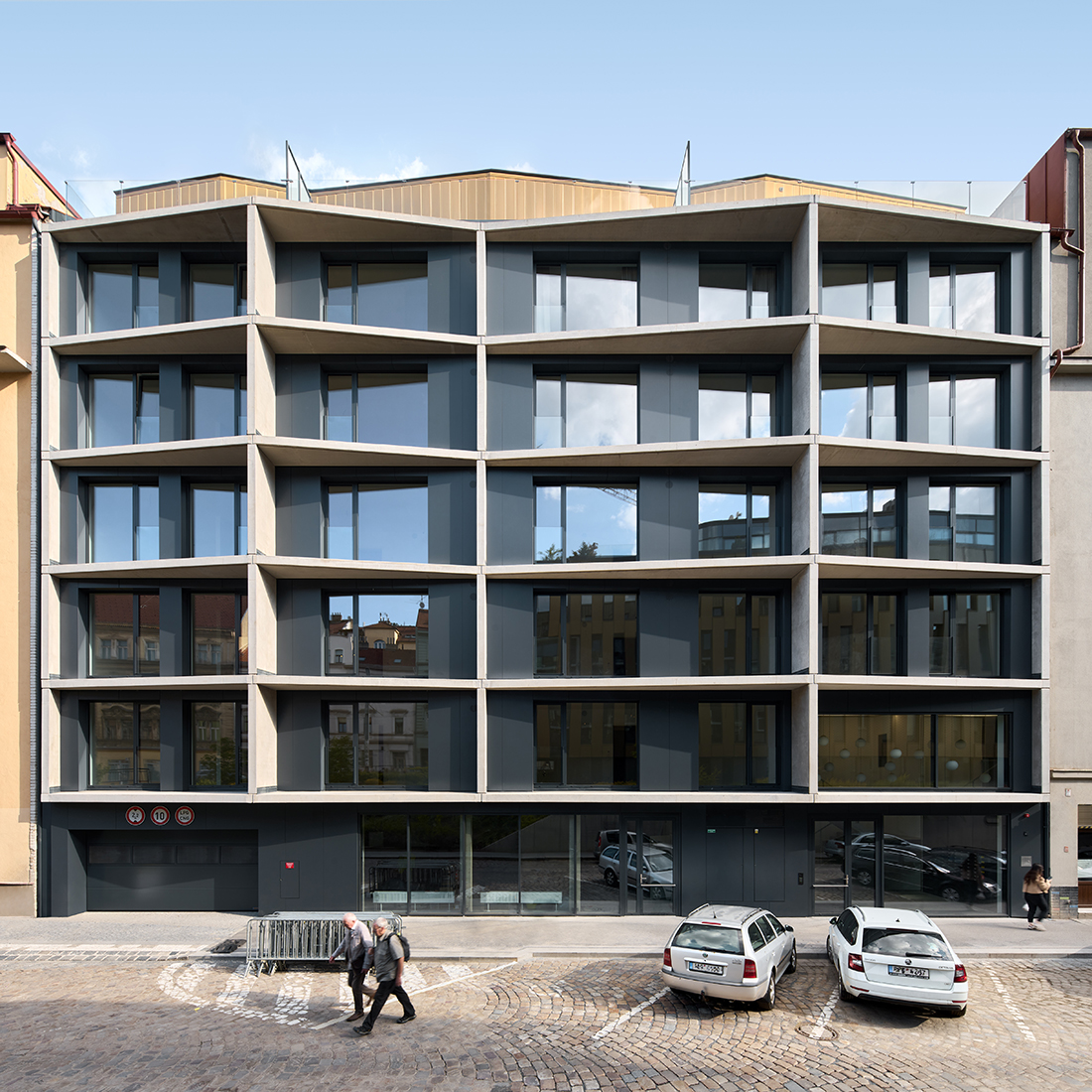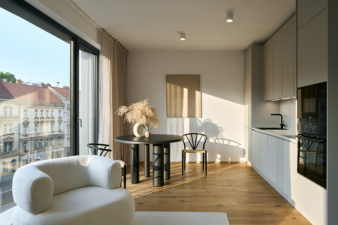 The Starokošířská Residence represents modern urban housing, set within the established structure of Prague’s Košíře. The architecture of the house follows the surrounding development and, at the same time, gives it a contemporary expression, combining classicizing proportions with purity of detail. The project completes the newly created urban avenue of Starokošířská Street and brings a balanced combination of urban character and a quiet courtyard.