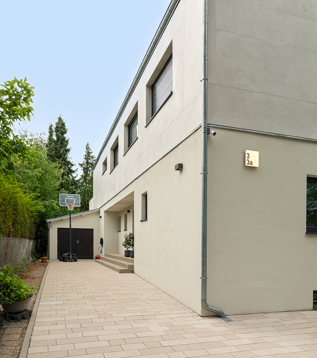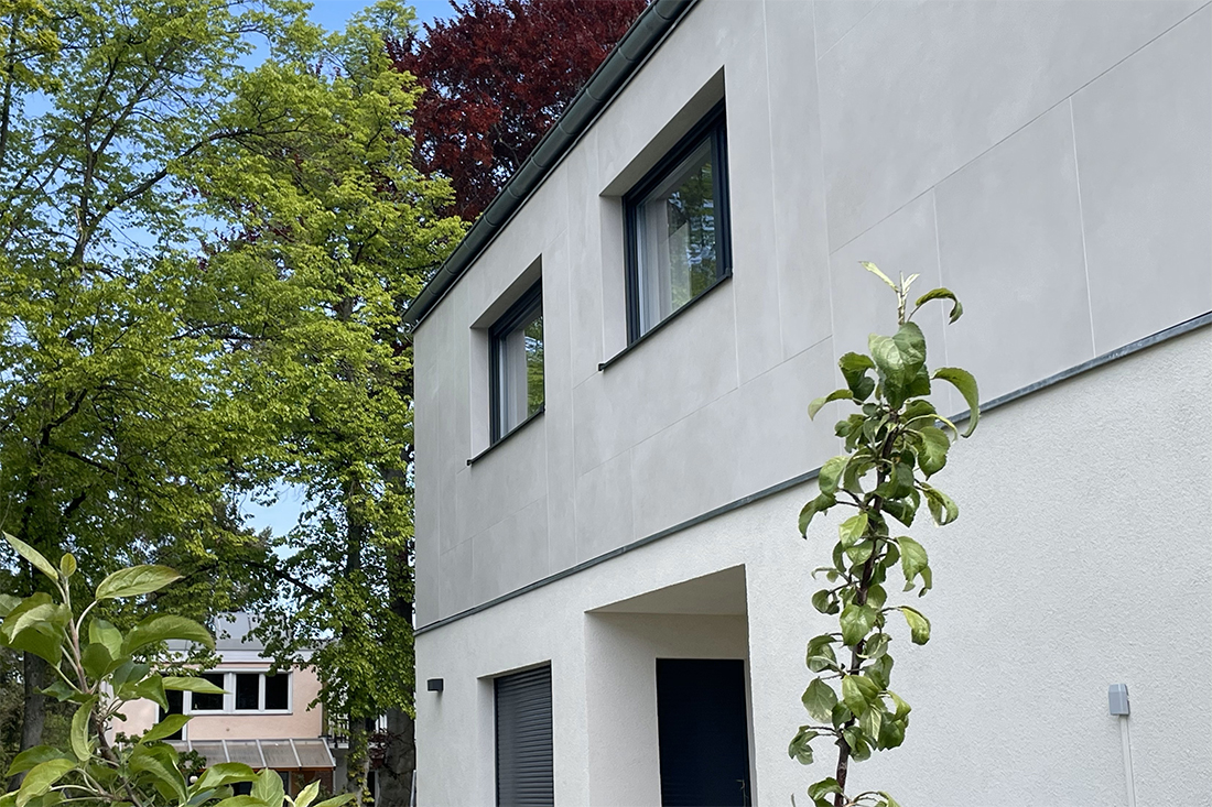 In addition to the advantages during installation, this construction method results in a low weight, which is particularly beneficial for additional floors, and also offers good thermal insulation qualities. The ground floor was given an insulated plaster façade, while the newly constructed upper floor was clad with large-format ceramic façade panels, creating a subtly accentuated distinction between the existing building and the extension. Energy-Efficiency Modernization: A particular focus of the project was on energy optimization.