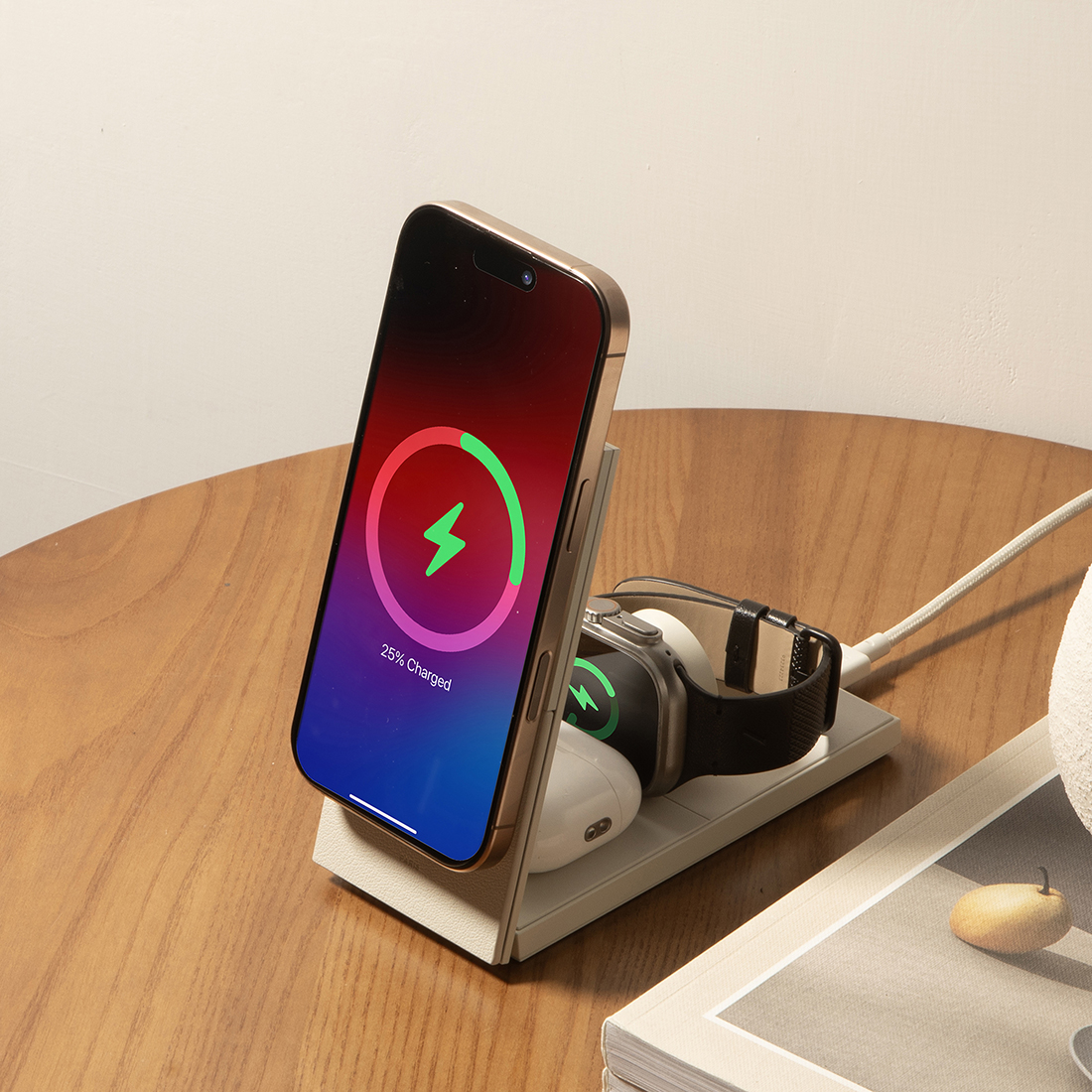 Designed to be the only charger you won’t want to hide away, the RISE 3-in-1 combines the latest wireless technology with thoughtful design and premium materials. It effortlessly charges up to three devices simultaneously, providing a clutter-free experience. Crafted with precision, its sleek and compact form adds a touch of sophistication to any space.