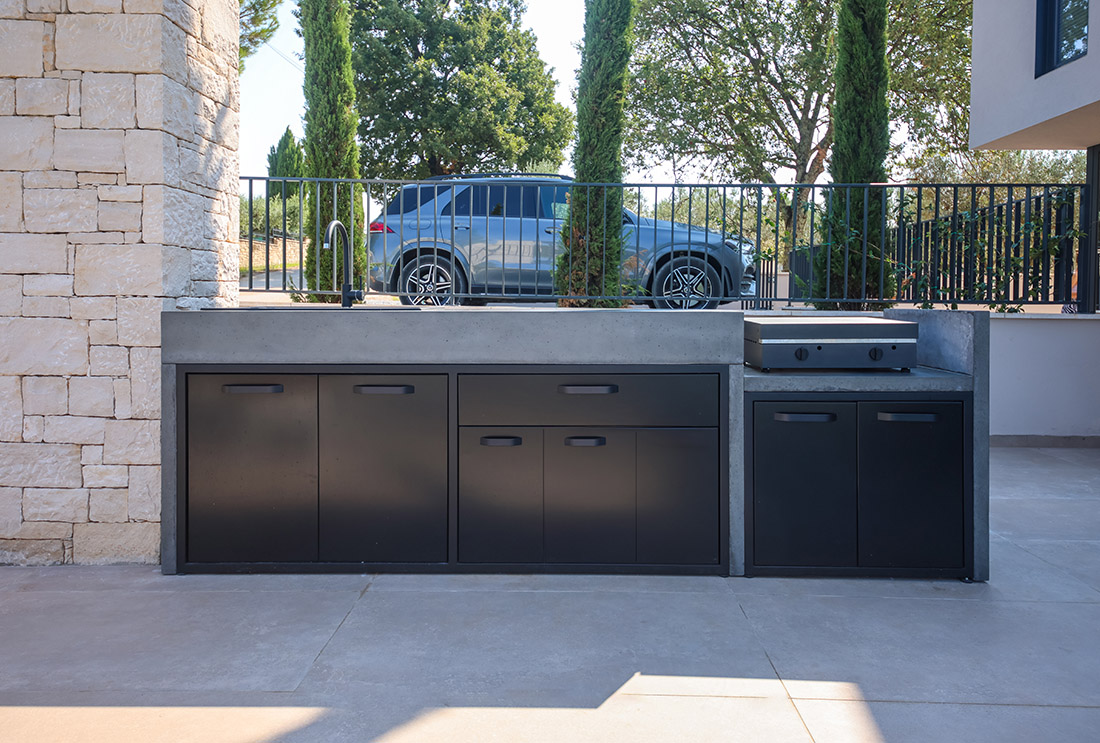 The Rock Collection captures the essence of strength, durability, and authenticity, mirroring the bold spirit and energy of rock music. Featuring robust outdoor kitchens, tables, bar tables, and chairs, each piece in this collection is crafted to endure the test of time. Concrete details contribute an industrial charm that makes every item truly distinctive. Designed for those who appreciate furniture with character, the Rock Collection not only fulfills practical needs but also inspires creativity and individuality.