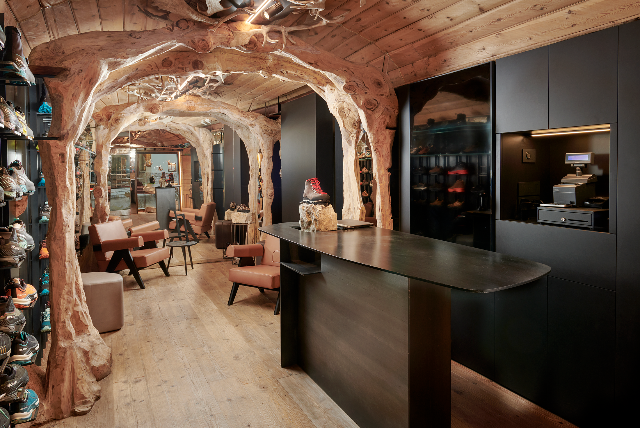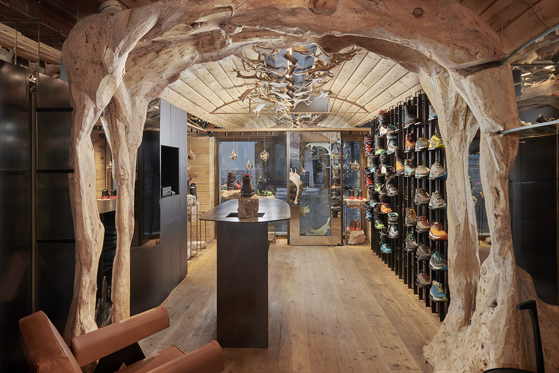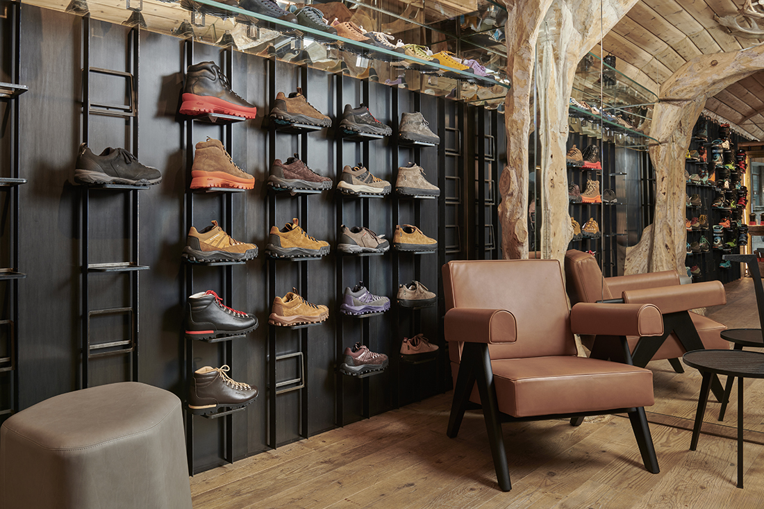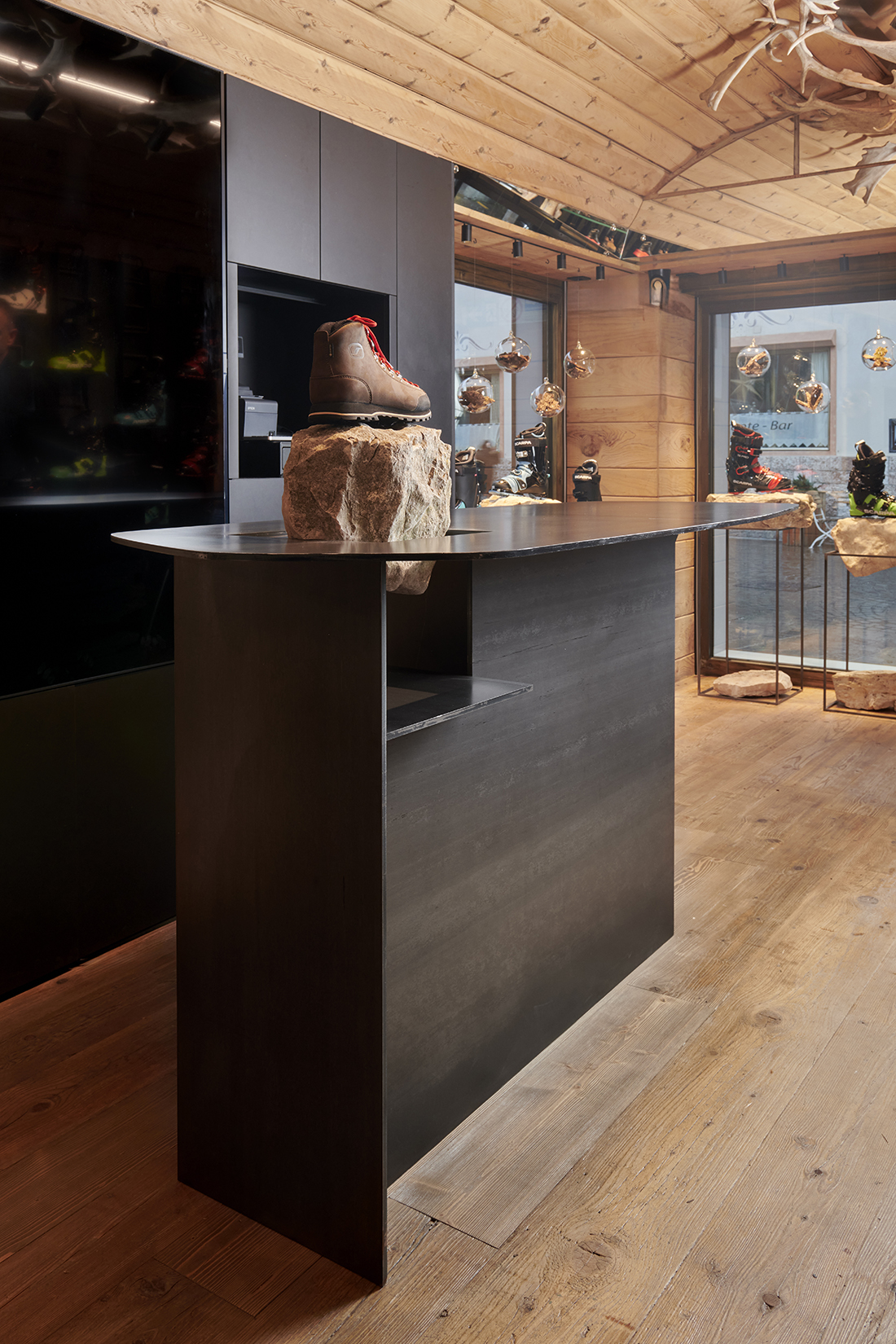 Together, they transform the space into an authentic, sensorial experience. The store’s aesthetic reflects a balance between tradition and modernity, creating a space that blends harmoniously with the prestigious Corso Italia and the authentic atmosphere of the Queen of the Dolomites. The project was developed with a strong focus on sustainability and eco-friendliness, in keeping with the brand’s values. The entire concept aims to reduce environmental impact through a minimalist design, the use of modular and versatile furnishings, and the enhancement of natural light.