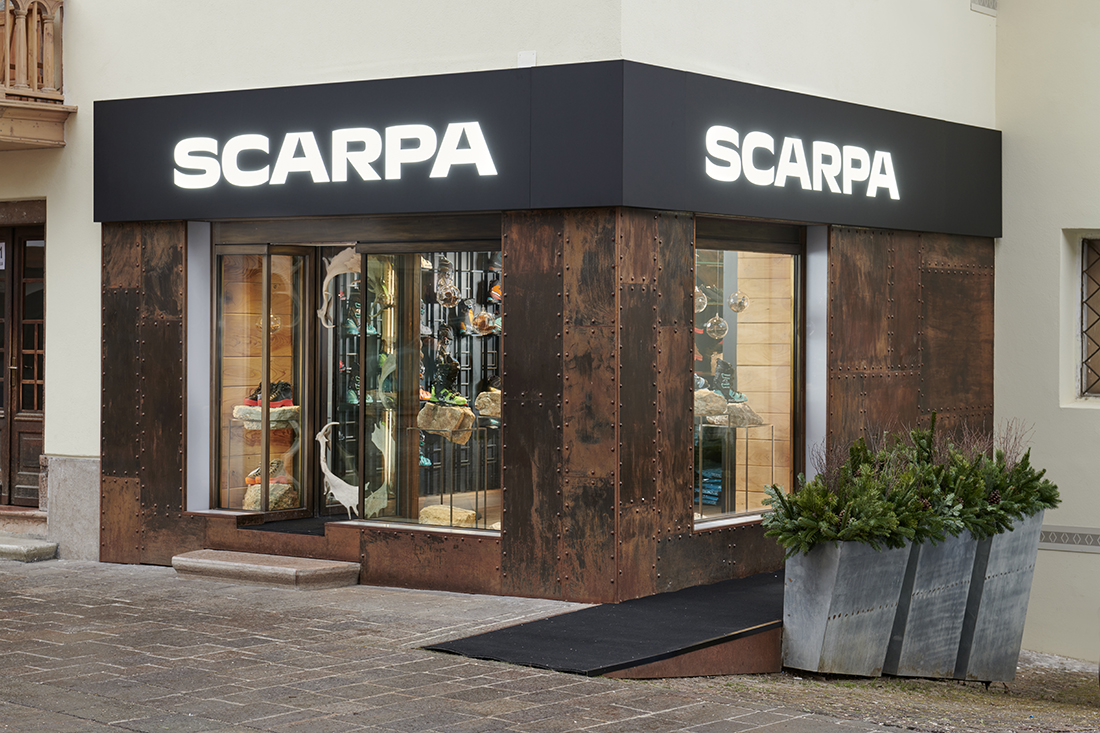 The design concept stems from the goal of creating a space that isn’t just a store, but an experience, capable of expressing SCARPA’s identity and engaging with the history and nature of Cortina d’Ampezzo. The concept revolves around the dialogue between iron and stone: natural iron evokes the craftsmanship and support of via ferratas, emblems of the determination to conquer the peaks, while Dolomia stone embodies the memory and soul of the surrounding mountains.