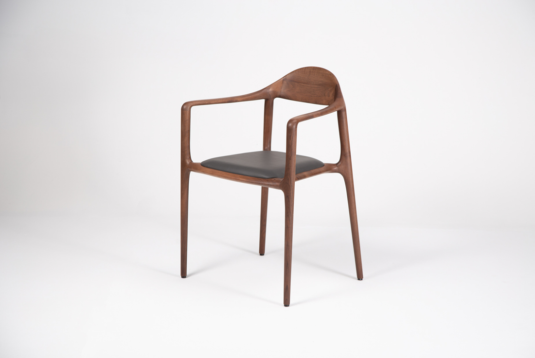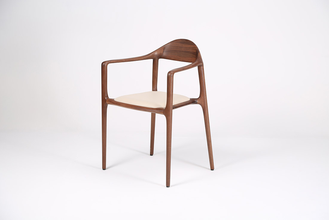 This elegant dining chair showcases a sculptural silhouette, masterfully crafted from solid wood. The chair’s organic form, inspired by nature, reflects Mobello’s dedication to creating versatile pieces that seamlessly fit into any contemporary setting. Its tapered legs flow effortlessly into the seat, while a curved backrest and slender armrests enhance both comfort and aesthetic appeal.