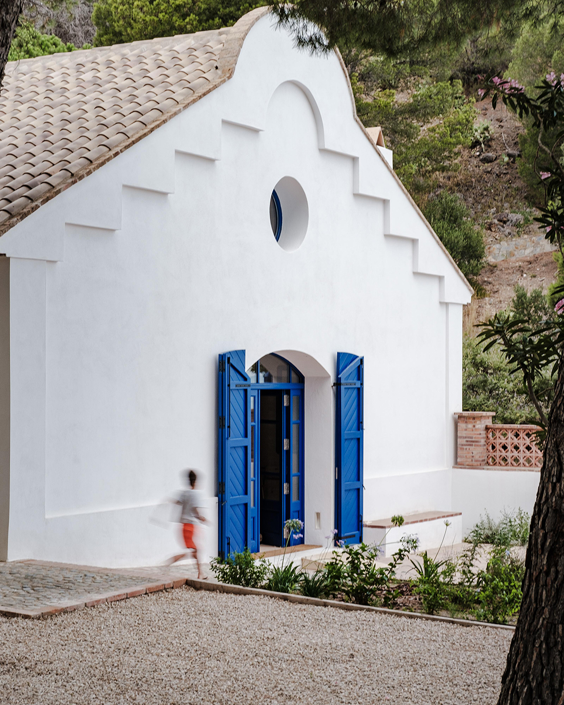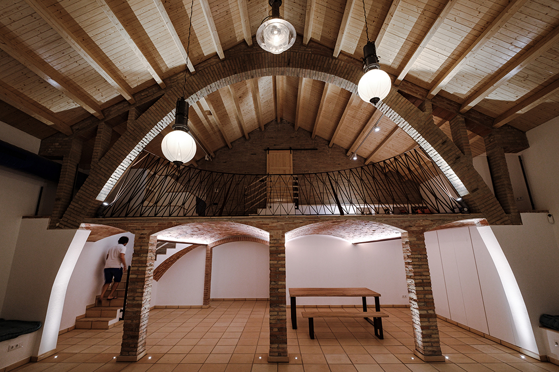 The refurbished building, originally a sardine curing facility in Colera, Costa Brava, is a significant example of early 20th-century cooperative architecture in Catalonia, built with simple, locally sourced materials like stone and ceramics. As part of a movement where workers combined efforts to create functional spaces with limited resources, they used arches to span large areas without obstructions, while ensuring durability and lightness.