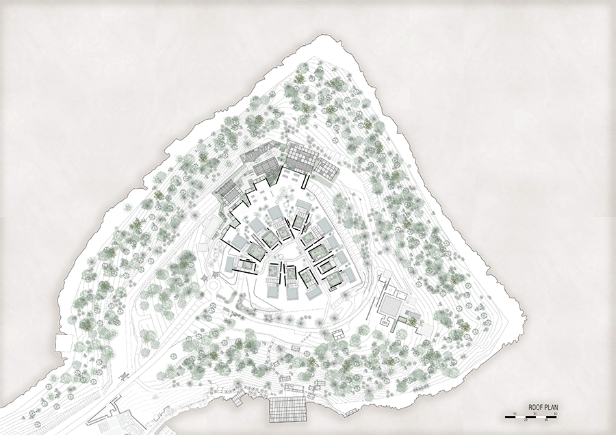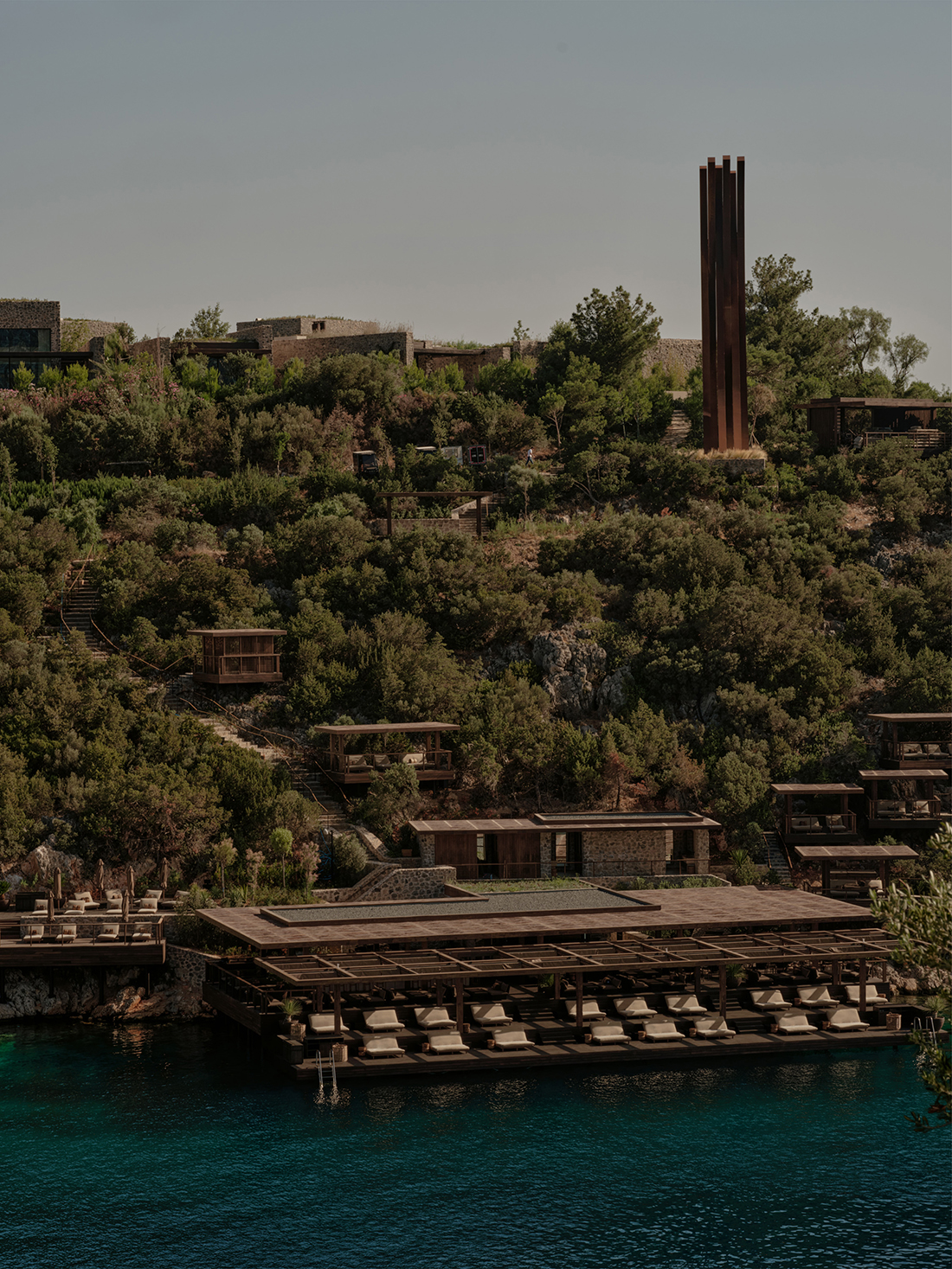 Scorpios Bodrum is a boutique resort on Turkey’s Aegean coast that seamlessly blends nature, architecture, and human interaction into a sustainable retreat. The resort’s design is centered around the movement of sunlight, creating an immersive experience that spans from sunrise to sunset. The master plan, resembling a small Aegean village, features twelve island villas and diverse amenities, including a village square, reception, sports cabanas, beach decks, retail areas, and dining facilities.