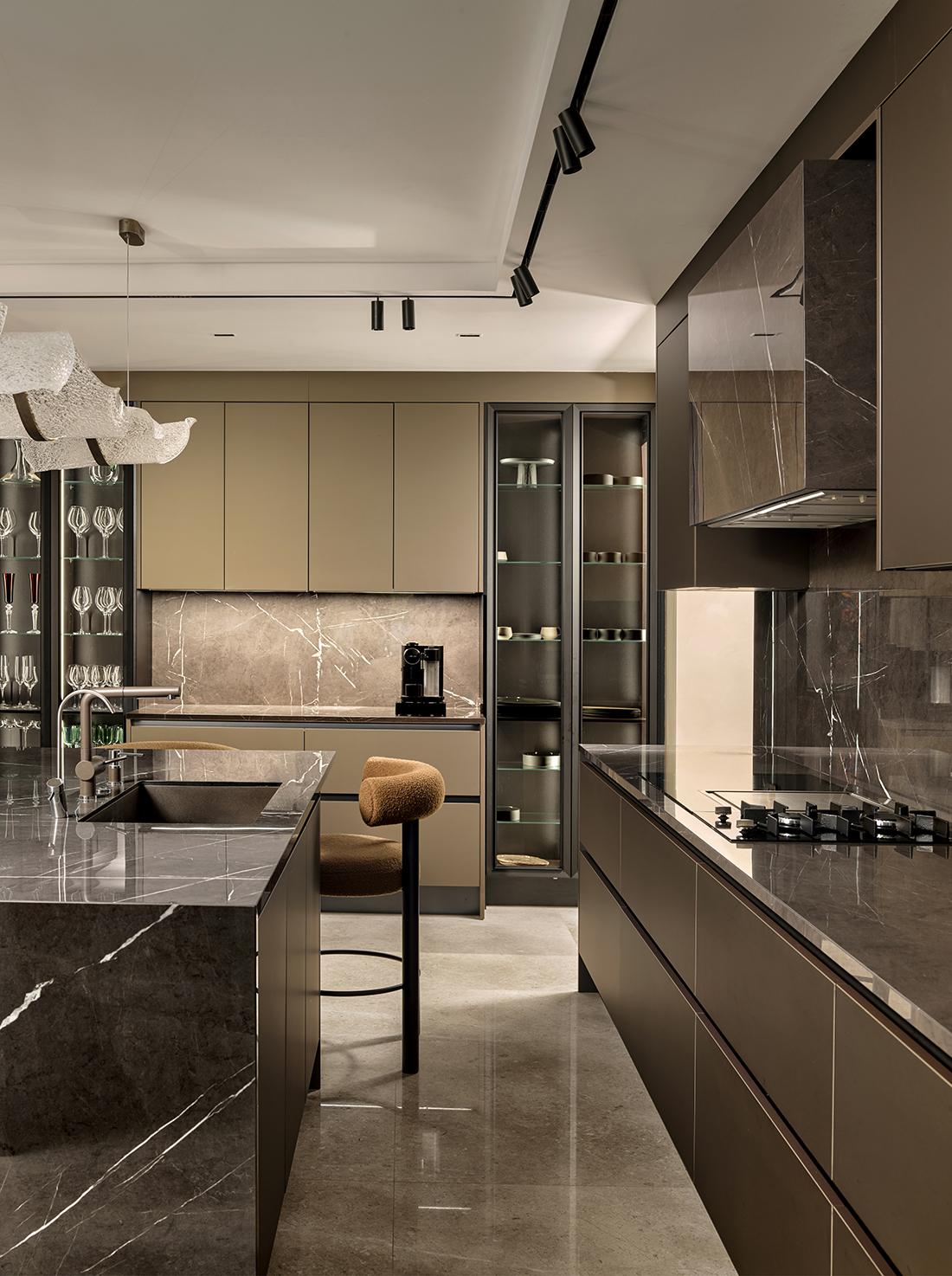 Individual private areas are articulated to convey each family member’s identity, whereas the communal zones are composed to reinforce unity and social interaction. Natural light is strategically employed to define spatial character and establish a sense of openness and calm, while the garden level extends the interior outward to achieve a seamless relationship between architecture and landscape. Consultations with the homeowners informed the inclusion of a bar within the living area, reinforcing the ground floor as an elegant, social focal point. The design language harmonizes Ala Sirkeci’s architectural identity with the family’s lifestyle, resulting in a residence distinguished by refined coherence, careful detailing, and a sustained contemporary expression.