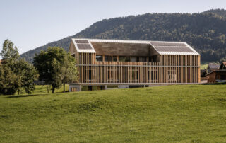 Eine Schutzhütte und bewusst kein Panoramarestaurant auf 2.740m, am Rande des Hallstätter Gletschers, mitten im Naturschutzgebiet zwischen Hohen Dachstein und Dirndl. Die neue Schutzhütte ersetzt jene historische Seethalerhütte die 1929 ihren Ursprung hatte und nicht mehr saniert werden konnte. Der neue Standort folgt einerseits der vorhandenen Topografie und Felsformation und wurde andererseits durch eine Wind- und Schneesimulation eruiert. Die Funktion einer Schutzhütte wurde auf das Essentielle reduziert, und in Anlehnung an die Felsen des Dachsteinmassivs behutsam und unaufdringlich verankert. Damit die Grundfläche so klein wie möglich gehalten werden kann, wurde der schlanke Baukörper optimiert und in Technik-, Stuben- und Lagergeschoss aufgeteilt. Seine Form folgt klassisch der Funktion: Die Südfassade nimmt jenen Winkel ein, der optimal für die Sonneneinstrahlung für die Photovoltaik-Anlage ist. Die Dachfläche bildet einen rechten Winkel, und die abgeschrägten Wandflächen lassen optimal das Regenwasser abrinnen, um es für die Frischwasseraufbereitung zu sammeln. Es ist eine Symbiose aus Funktion und Einbettung in die Naturlandschaft. Die steingraue Aluminiumhülle spiegelt die Dachsteinwände wider, die Fenster sehen außen willkürlich gesetzt aus, im Gebäudeinneren zeigen sie klar ihr Konzept: Sie sind wie Bilderrahmen die ihre Umgebung einfassen. Die Konstruktion ist ein vorgefertigter Massivholzbau welcher auf einem Betonsockel gesetzt wurde. Unbehandelt dominieren die BSP-Fichtenflächen der Wände und Decken den Innenraum. Unterstützt wird die weiche, haptische Atmosphäre im Inneren durch den zusätzlichen Einsatz von Fichte für die Böden und Möblierung.