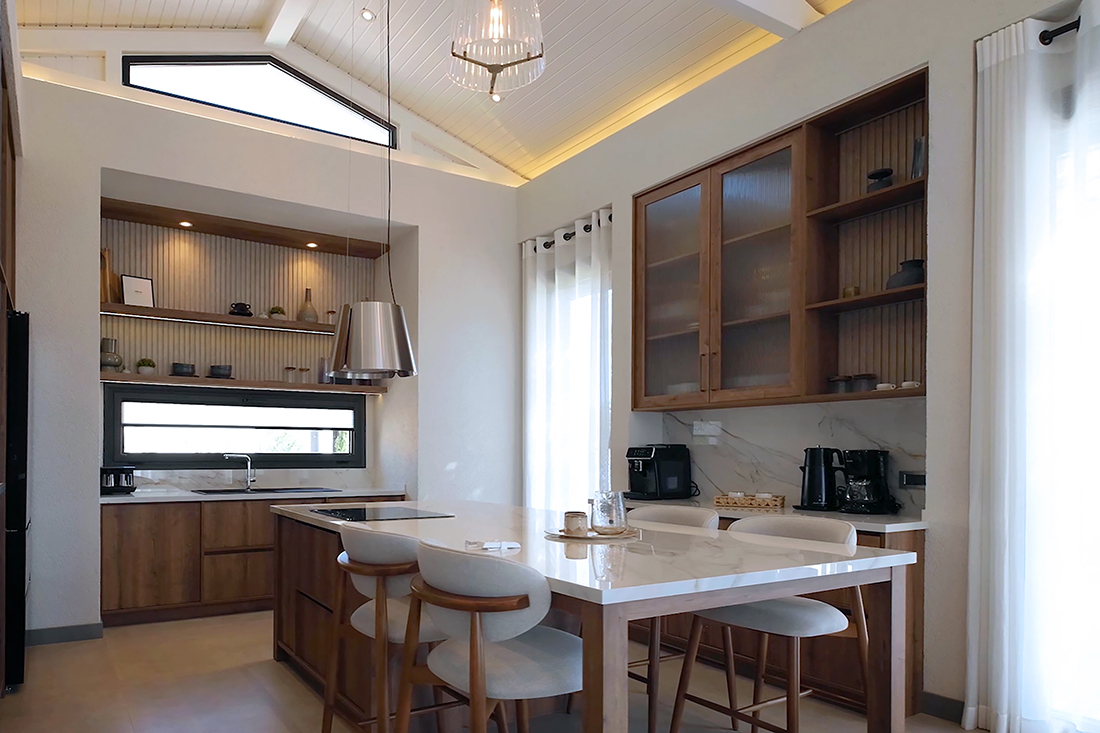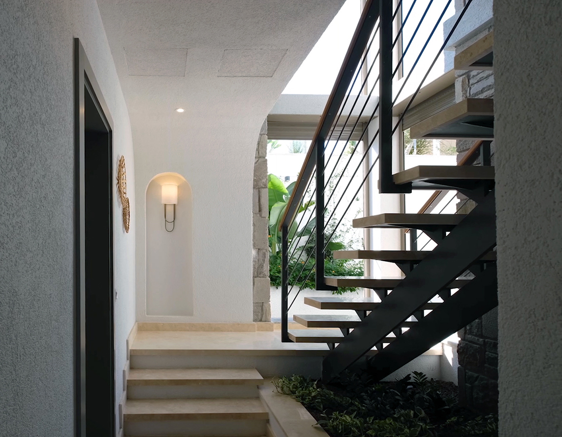 To fully embrace the Mediterranean climate, the ground floor living spaces were designed to create a seamless connection with the garden and surrounding environment, incorporating shaded areas to enhance outdoor living.