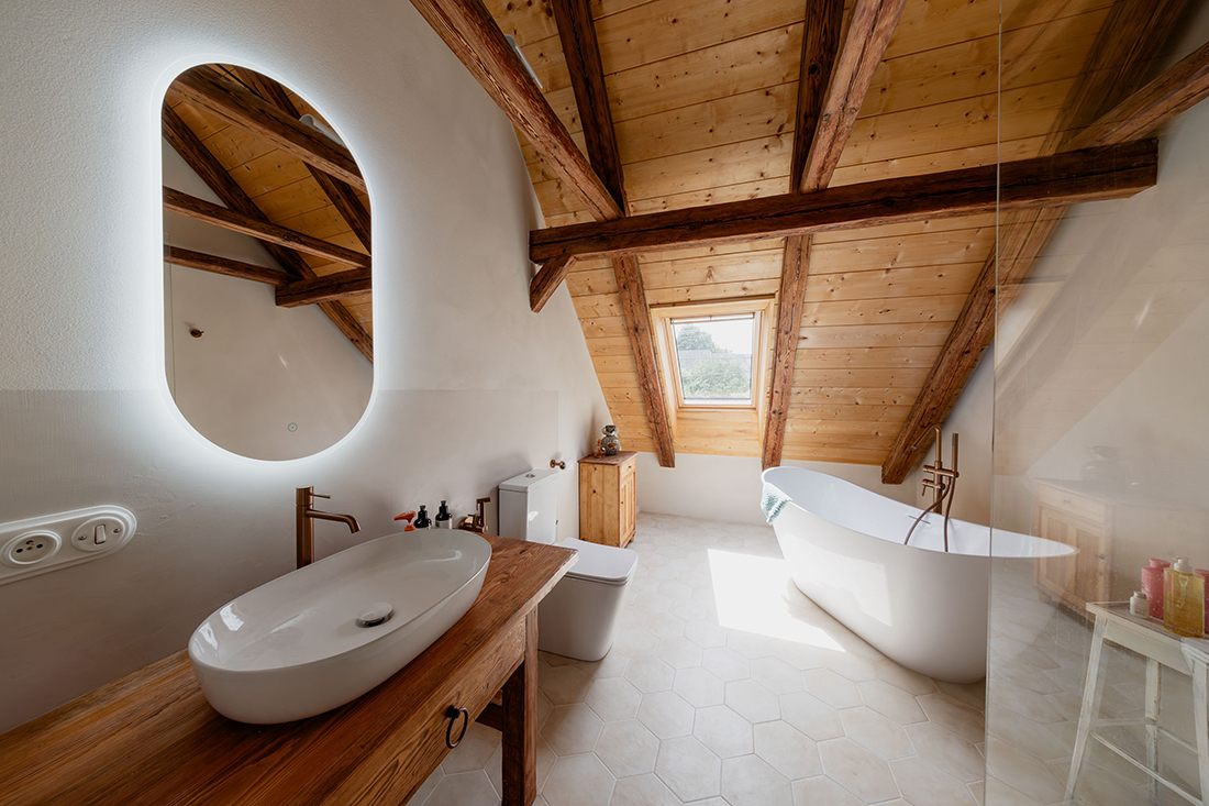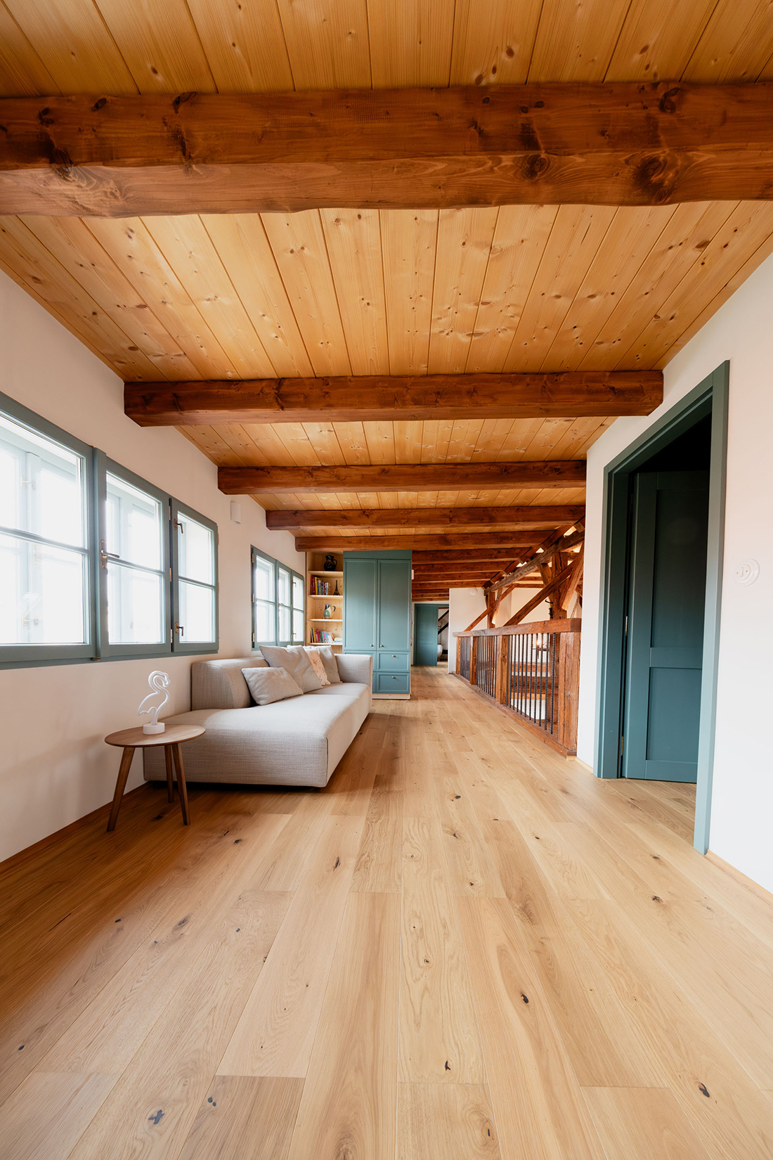 The interior design of the reconstructed farmstead in the village of Rancířov is based on a respectful dialogue between rural heritage and contemporary living. The concept preserves the original spatial logic of the farmhouse, while introducing new layers that enhance comfort without suppressing the character of the place.