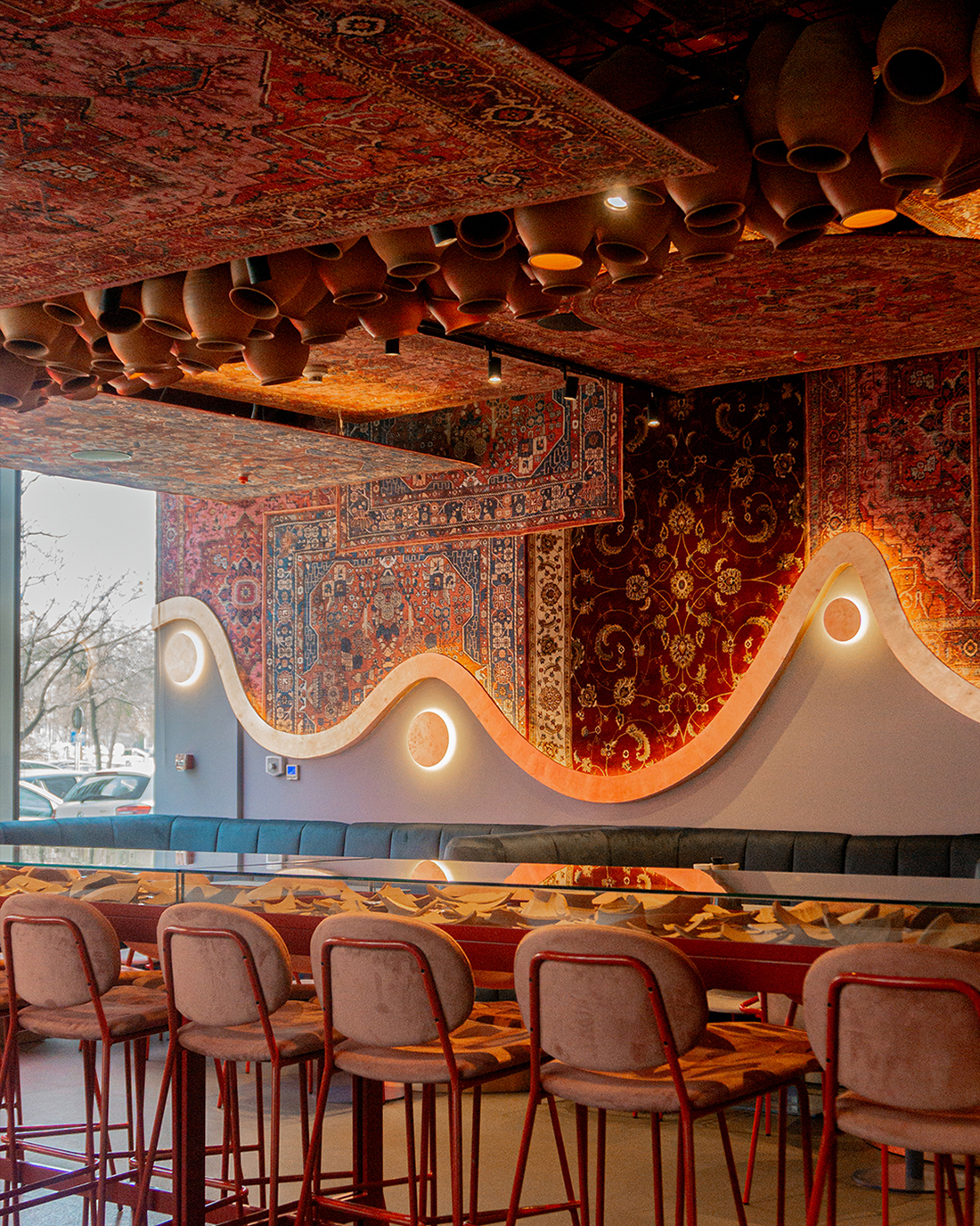 The restaurant design draws inspiration from traditional Oriental aesthetics, creating an immersive and atmospheric dining environment that reflects the culinary concept of the space. Since the owner intended to serve Oriental-inspired dishes in the à la carte area, the interior design was developed to visually communicate and enhance this cultural narrative.