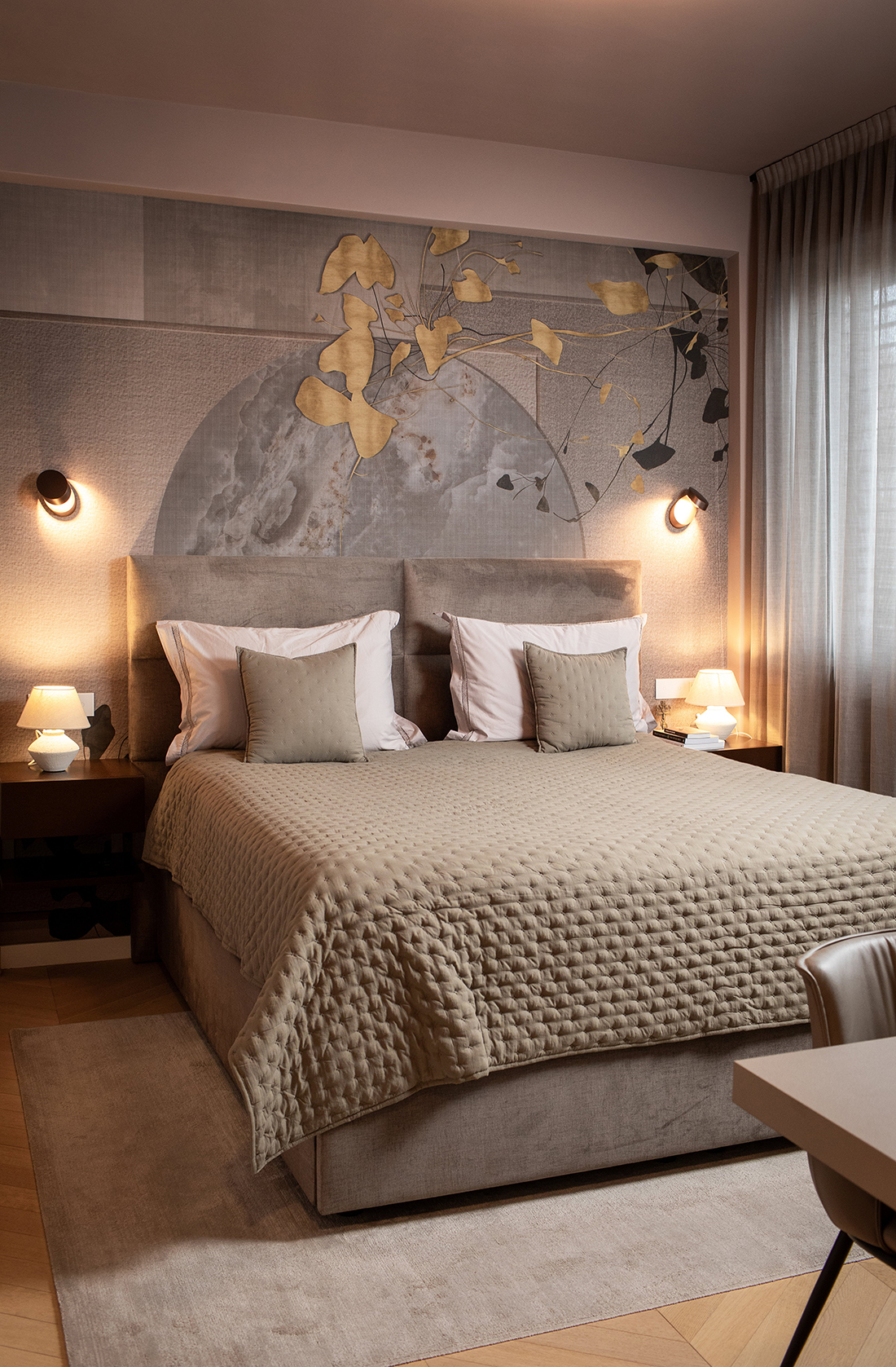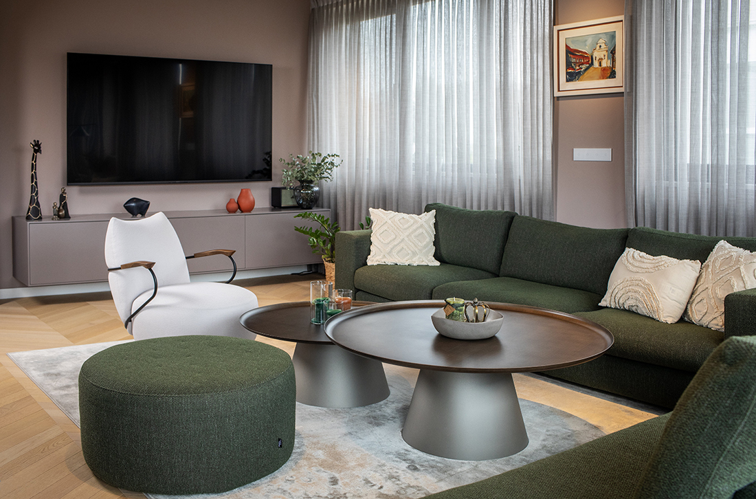 On the other hand, the visible and prominent structural grid formed the basis of the color concept, where darker shades pushed it into the background, while light accents, scenic elements, and tactile surfaces shifted the focus to the interior furnishings and directed the view outward.