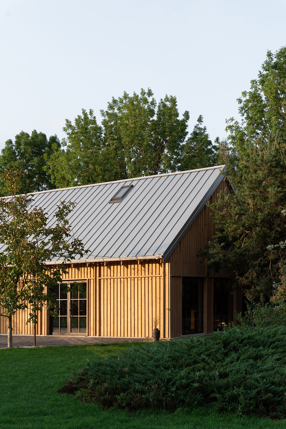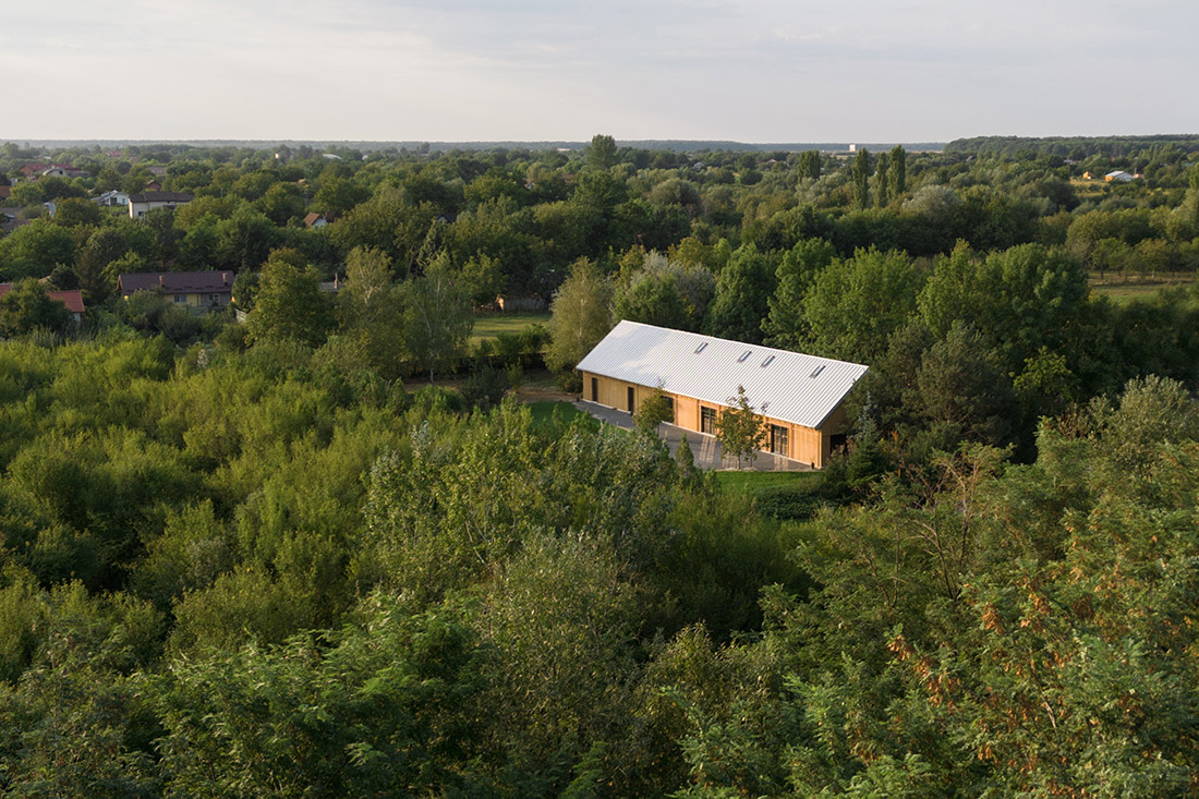 Located a short distance from Bucharest, Romania, the pavilion serves as an occasional retreat for small seasonal events. Its purpose is to provide a suitable backdrop for the intended activities while maintaining enough neutrality and flexibility for future use. Upon initial observation, we were struck by the scale of the location and the abundance of plant life. Mature vegetation has been present on the site from the beginning, seemingly spreading naturally.