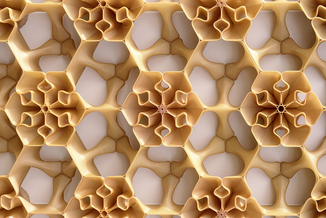 Crafted from sustainable polymers, the modules are lightweight and environmentally responsible. Made from 100% recycled biodegradable polymer enriched with organic by-products, the material offers natural warmth and subtle translucency. Organic fibres remain visible within, celebrating the raw, unfiltered composition as it takes shape into organic forms.