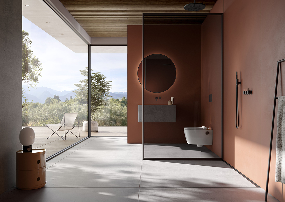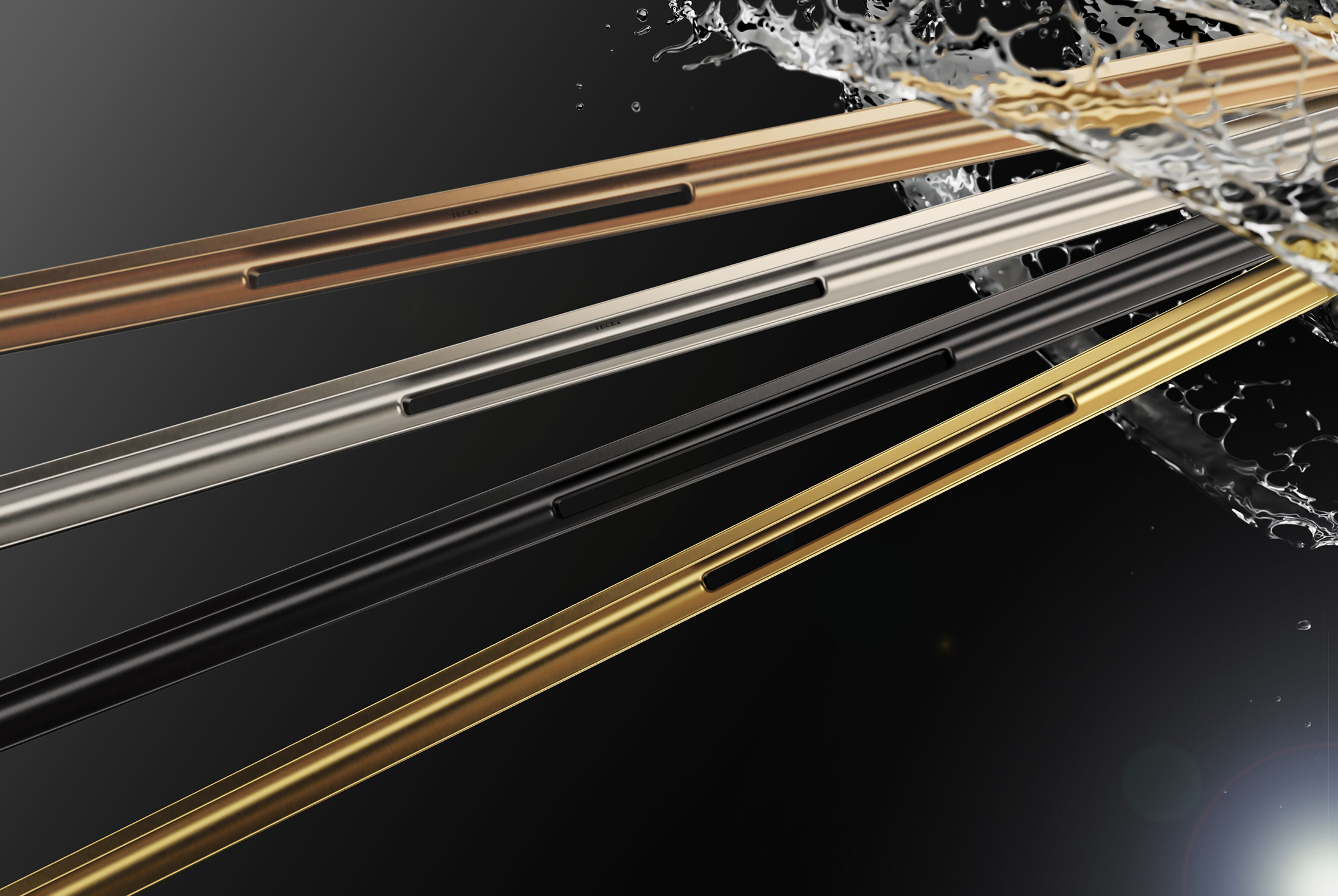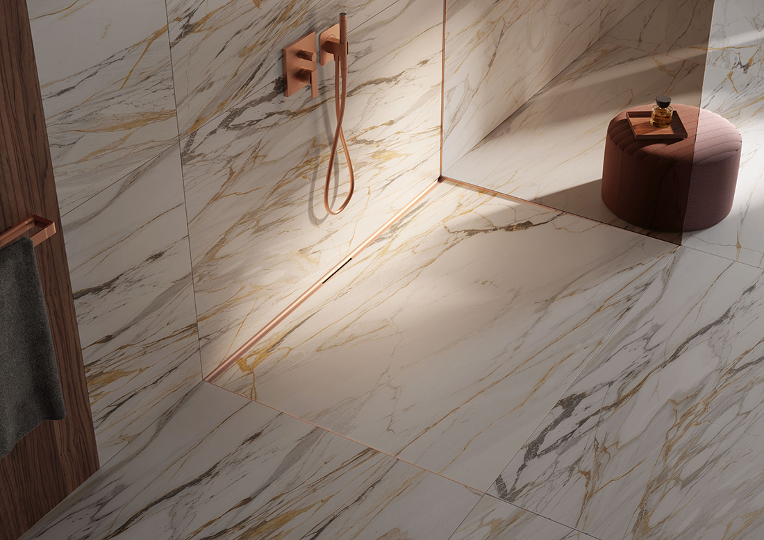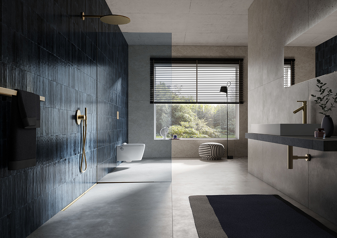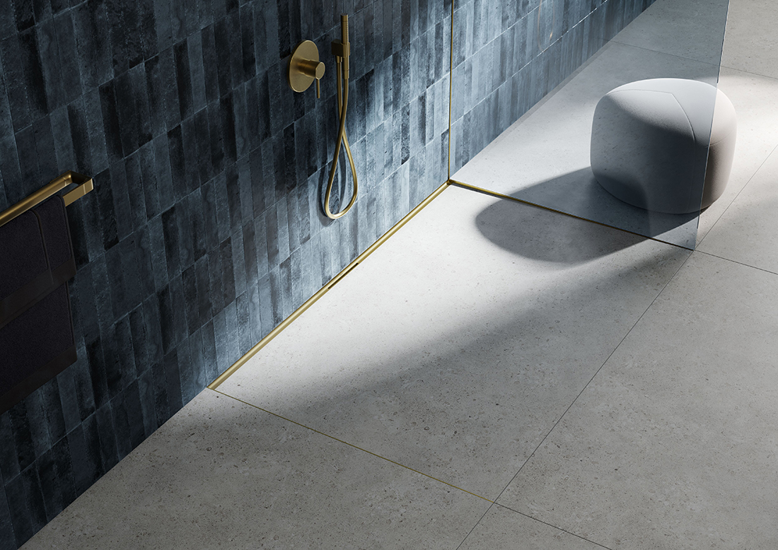 The innovative TECEdrainway shower channel. A particularly elegant installation solution in the shower area is the subtle integration of the shower channel in the transition between the wall and floor tiles. A stylish look that blends unobtrusively and seamlessly into the ambience – present, without being dominant. Smooth surfaces without corners and edges for optimum water drainage. Pleasing to the eye and ideal for cleaning with maximum hygiene and cleanliness. The integrated 3D gradient of the TECEdrainway channel profile optimizes the water flow in such a way that a practical self-cleaning effect is created.