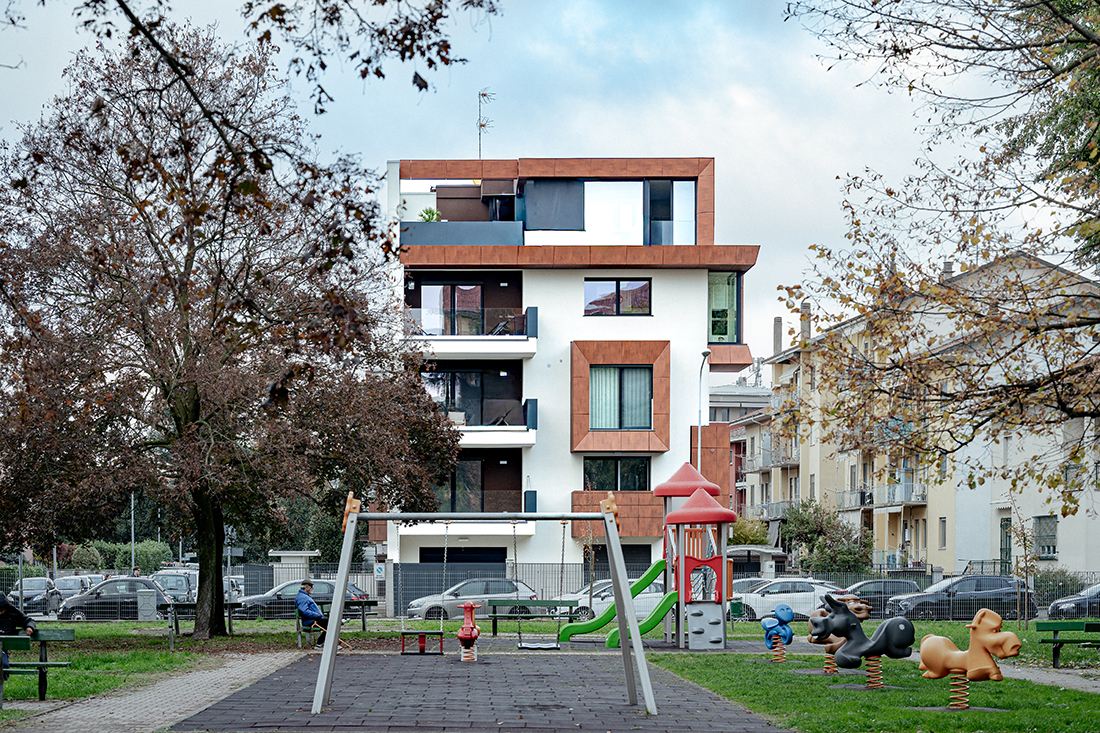 A new way of living takes shape through the demolition of an outdated building and the construction of a residence where architecture, function, and well-being converge. The project meets the needs of contemporary living, going beyond the idea of shelter to embrace the concept of “good living”. Fluid spaces open onto greenery – private gardens, glazed terraces, and a park – blurring the boundary between indoors and out.
