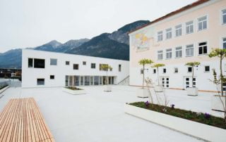 Central element of the house was planting of gardens on 60% of the plot on ground floor and promoting the use of green terrace on first floor. Bee- lawn was mostly planted on ground floor creating a friendly environment for bees helping thus to maintain the biodiversity. Studies show that 75% of the world’s food crops rely on bees. The building is designed in two rectangular cubes with a green courtyard in-between them. The idea of the inner garden makes it hard to realize where the garden stops and the interior begins. The garden at the center is the main feature in the house around which the rest of the spaces organized and function. The green seems to bisect the house from east to west; it flows deep into the interior, fills the unusable space under the staircase and escapes out to the other side of the house. The house becomes part of the park and the park is included in the house, in a sense the two are interrelated with shared places such as the pedestrian pathway, the garden, the veranda ect. and are considered as elements of one big house-like city. In this way our garden house helps to upgrade the quality of the urban fabric and at the same time seeks out to improve the biodiversity and thus reduce the carbon dioxide footprints in the city.