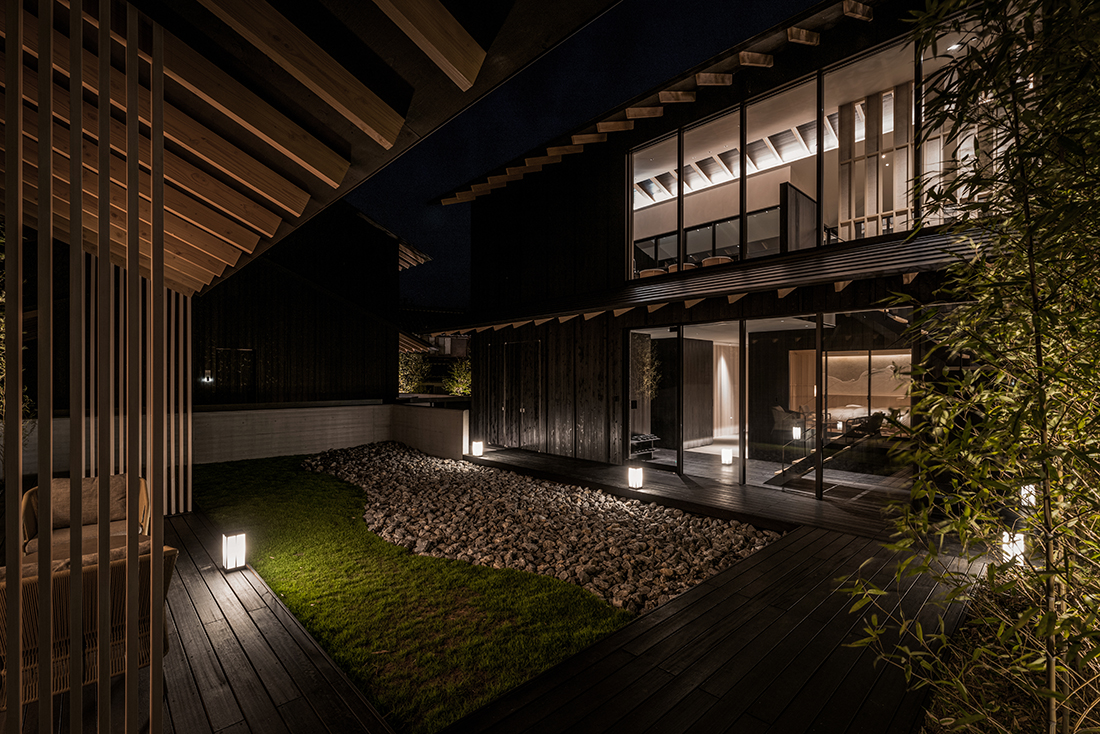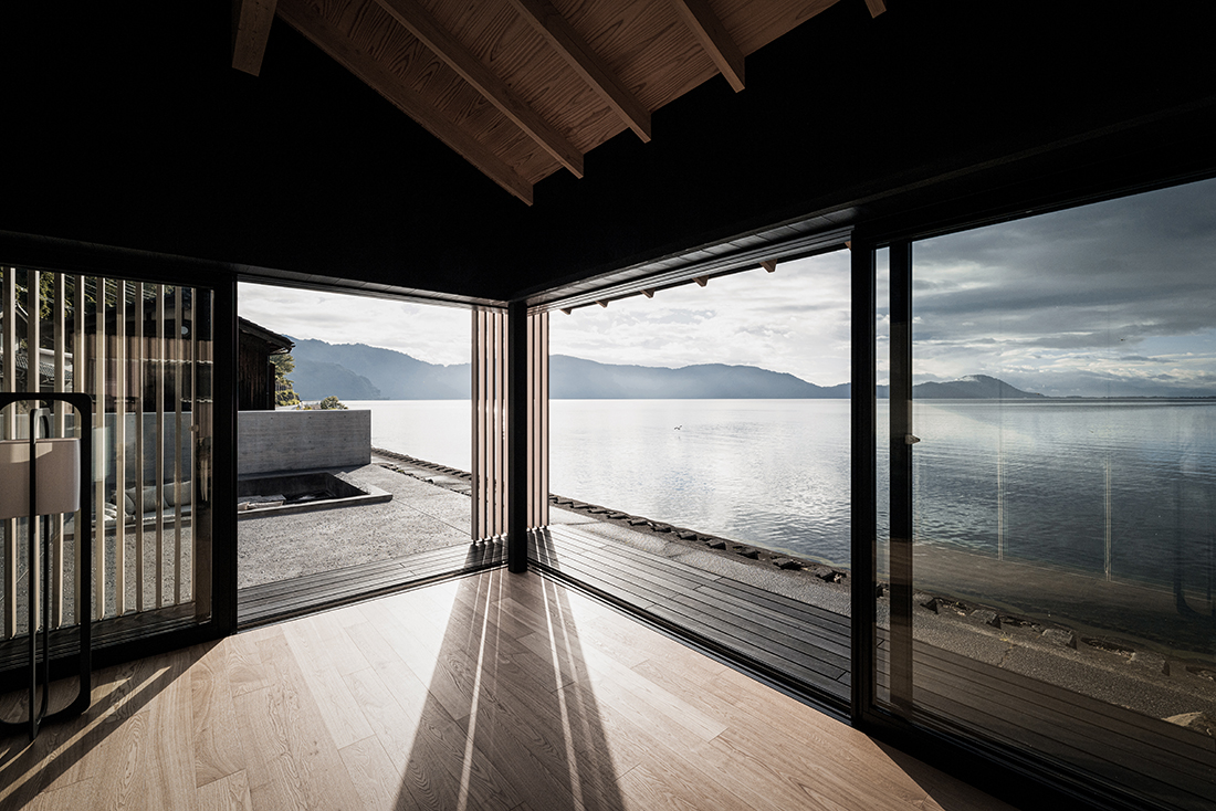 By taking advantage of the site’s elevation differences, the layout offers clear views of Lake Biwa from all areas, except for the “annex,” which serves primarily as a sleeping area. Despite the region’s heavy snowfall, the structural rafters are a hybrid of steel and wood, allowing the eaves to appear sharp and the roof material to protrude as thinly as possible. The villa offers a unique experience where guests can freely move between areas, creating their own time and enjoying the scenery of Lake Biwa.