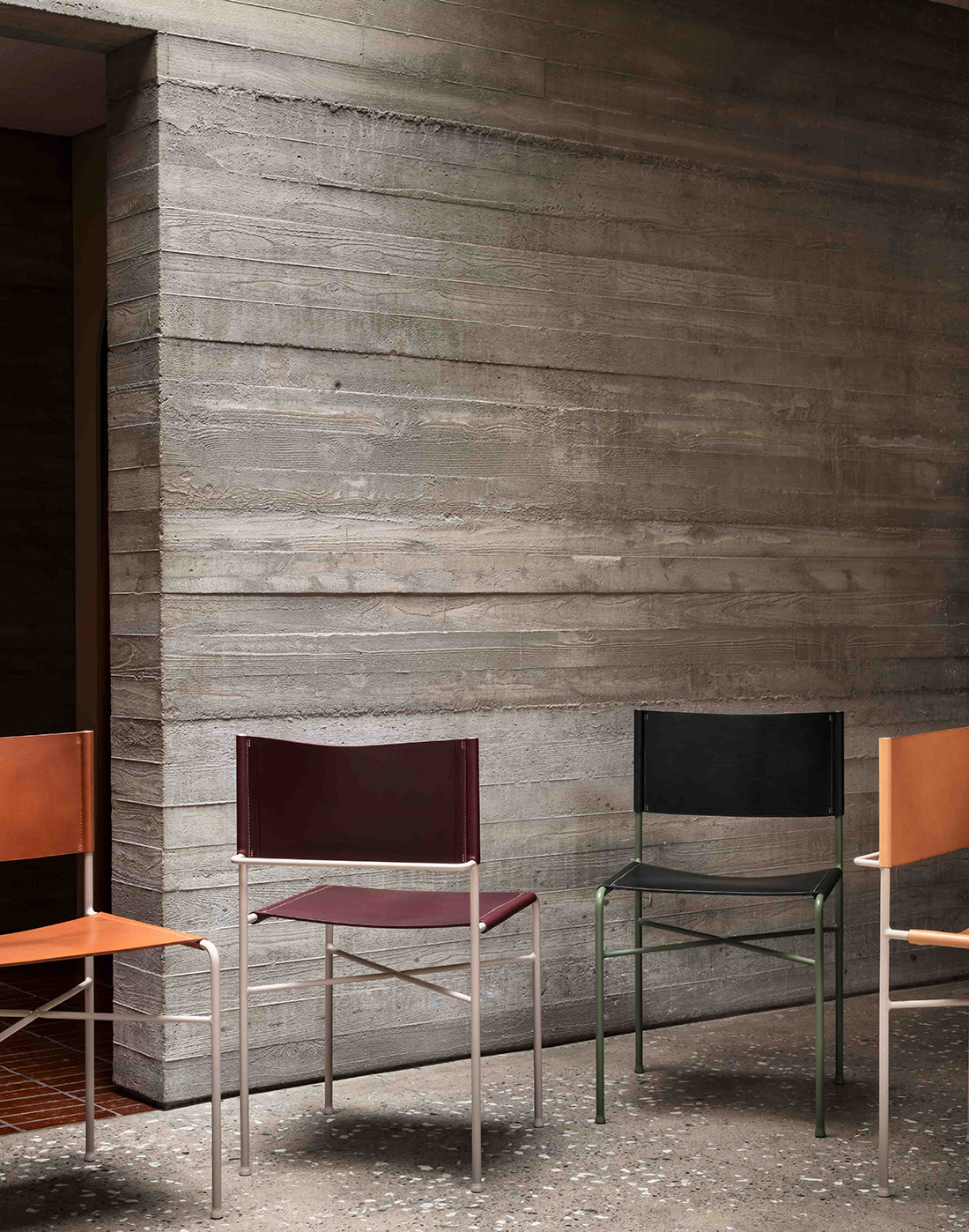 Bill Amberg Studio and Elizabeth Roberts Architects present their first ever collaboration – The Noble Chair – a dining chair designed to fill the gap between formality and casual comfort. The chair features a robust, solid steel rod frame with welded joints and hot-pressed feet, finished in a bespoke set of enamelled colorways.