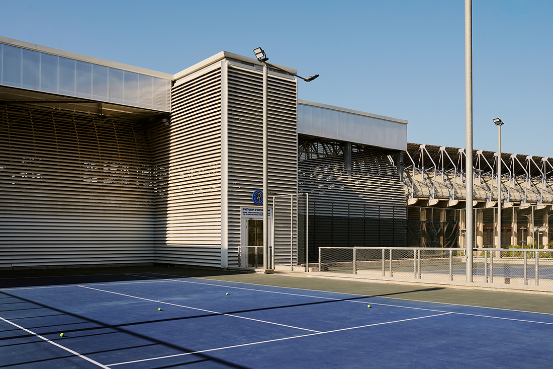 Its curved aluminum slatted façade provides light, shading, and airflow, while the ground floor houses a gym, squash and judo spaces, and athlete accommodations, fostering a holistic sports environment. Facing the future light rail station, the Center introduces a commercial frontage that activates the street. By opening the once-enclosed site, the design integrates sport, community, and city life, symbolizing the inclusive, modern future of Jerusalem’s sporting culture.
