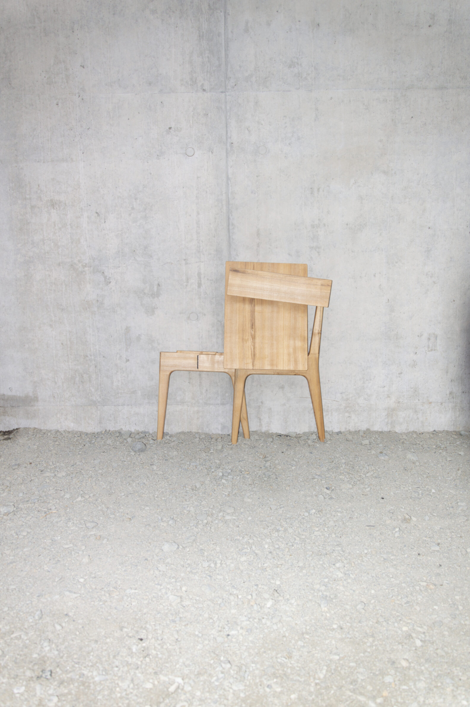 The design of the Klapstol chair stems from the idea of creating a folding chair that doesn‘t reveal its foldability, and where this feature does not compromise seating comfort. When folded, the chair looks as though it has been flattened—the resulting silhouette acts almost like a 2D illustration of a chair hanging on the wall.