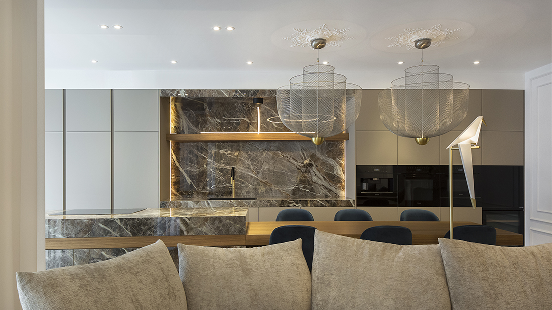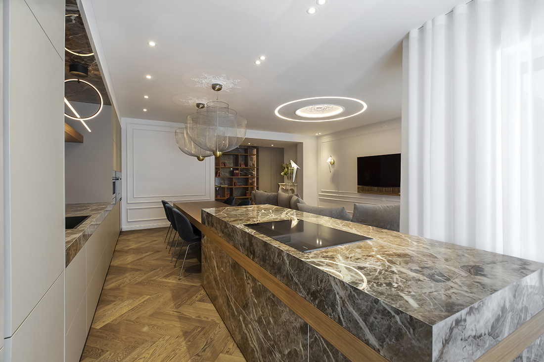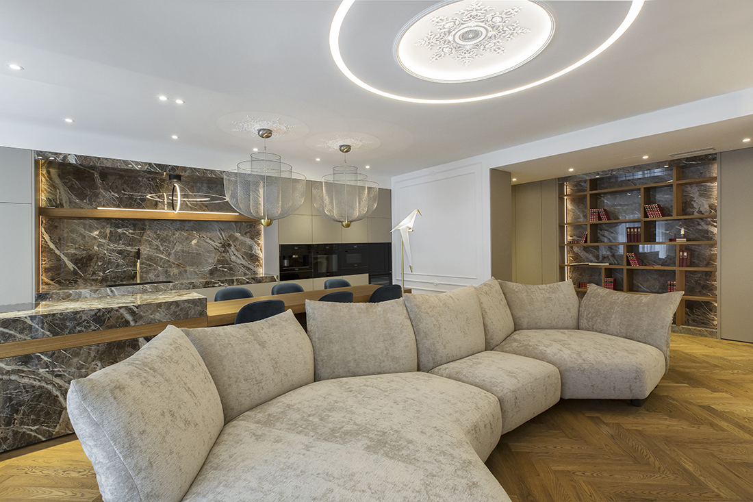 Timeless Glow is a seamless blend of classic sophistication and contemporary refinement. This interior balances rich textures, luxurious materials, and meticulous detailing to create a space that radiates warmth and prestige. The interplay of natural stone, warm wood, and soft textiles adds depth and character, while custom lighting elements cast an ethereal glow, accentuating intricate ceiling moldings and architectural features. Striking the perfect harmony between modern minimalism and timeless grandeur, every detail is thoughtfully curated to evoke a sense of enduring elegance.