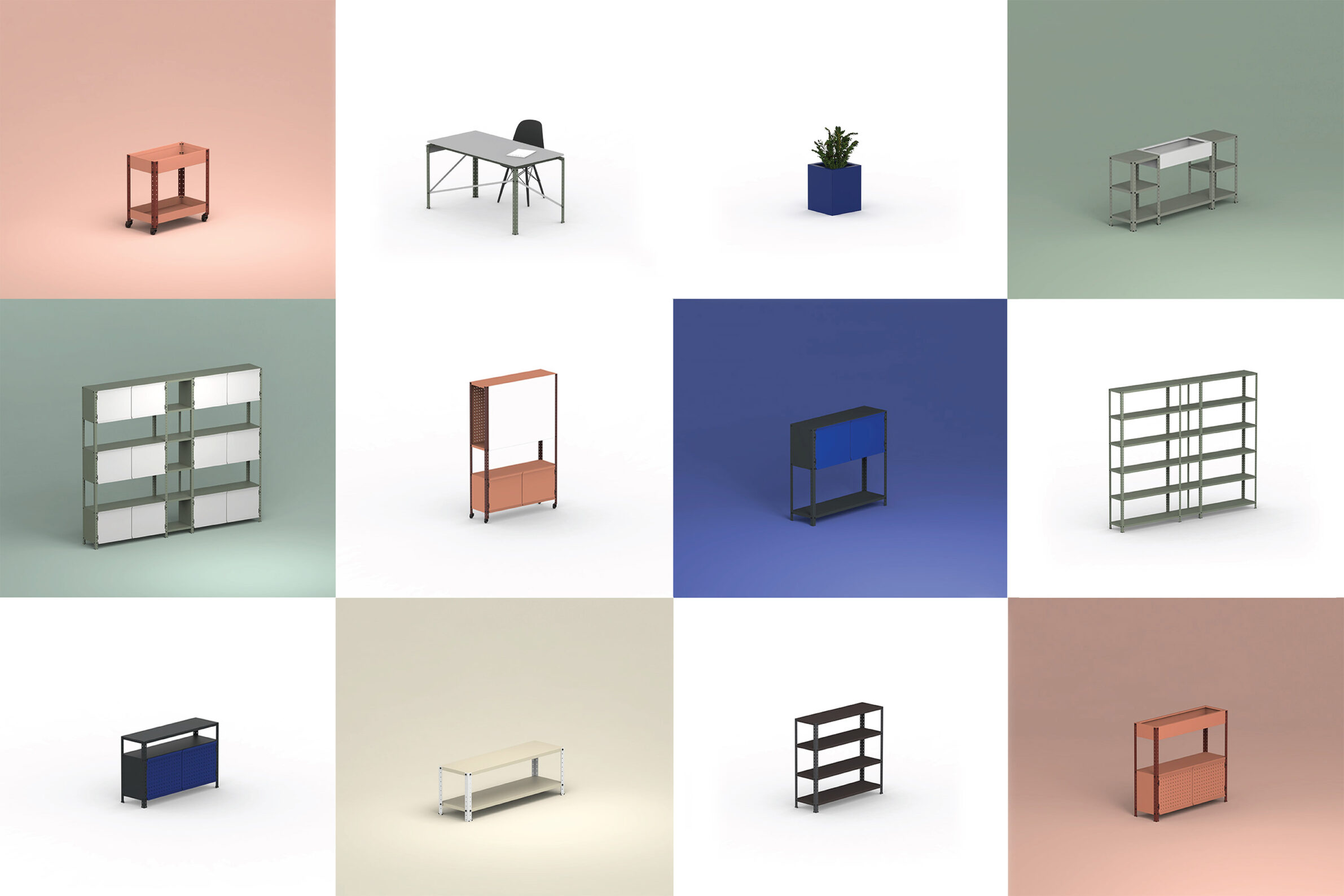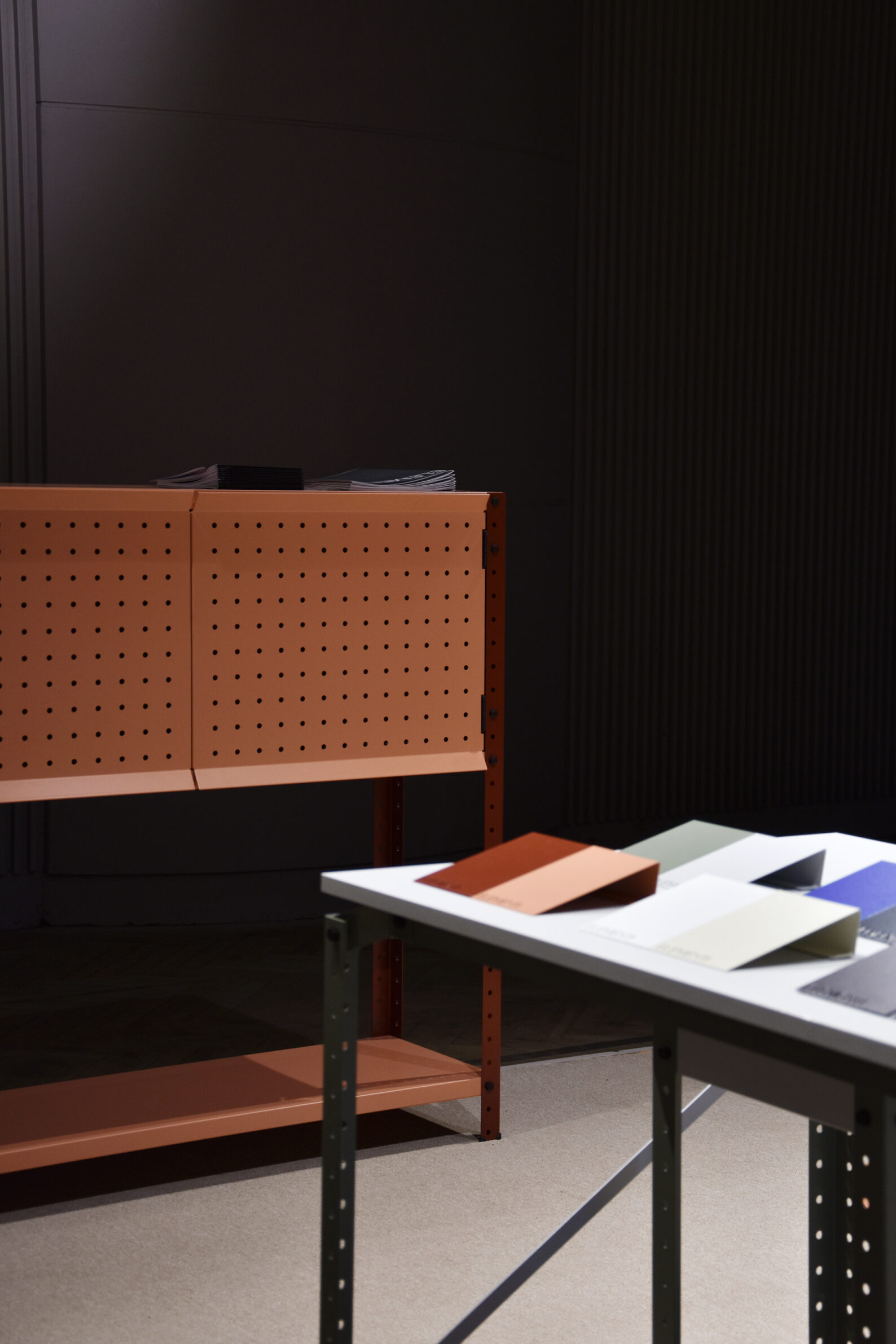 The appearance of the system is derived from the utilitarian, raw character of conventional archive shelving, intentionally preserved and refined through details such as doors, feet, and hinges. The product is direct and materially honest in its expression, allowing it to function equally well as an office or workshop storage system, as well as furniture for residential and retail environments.