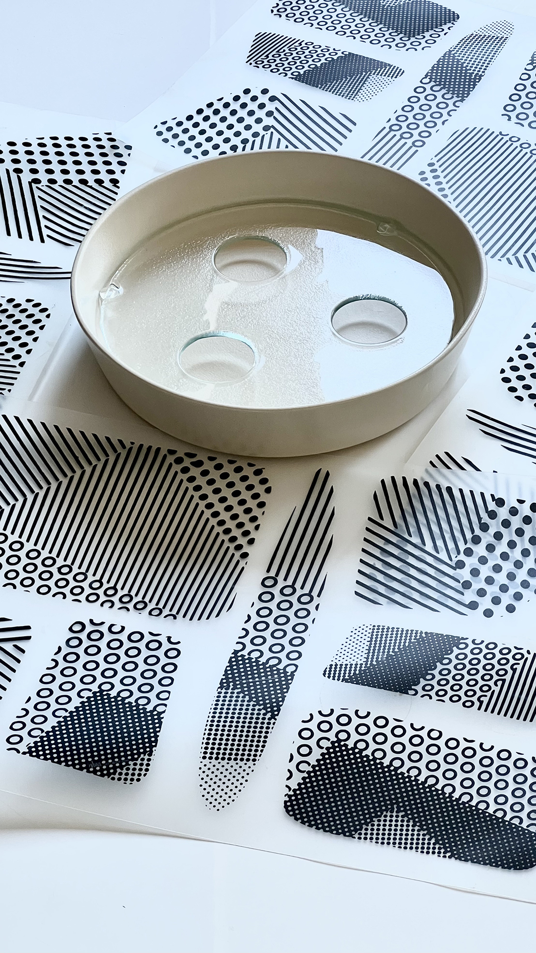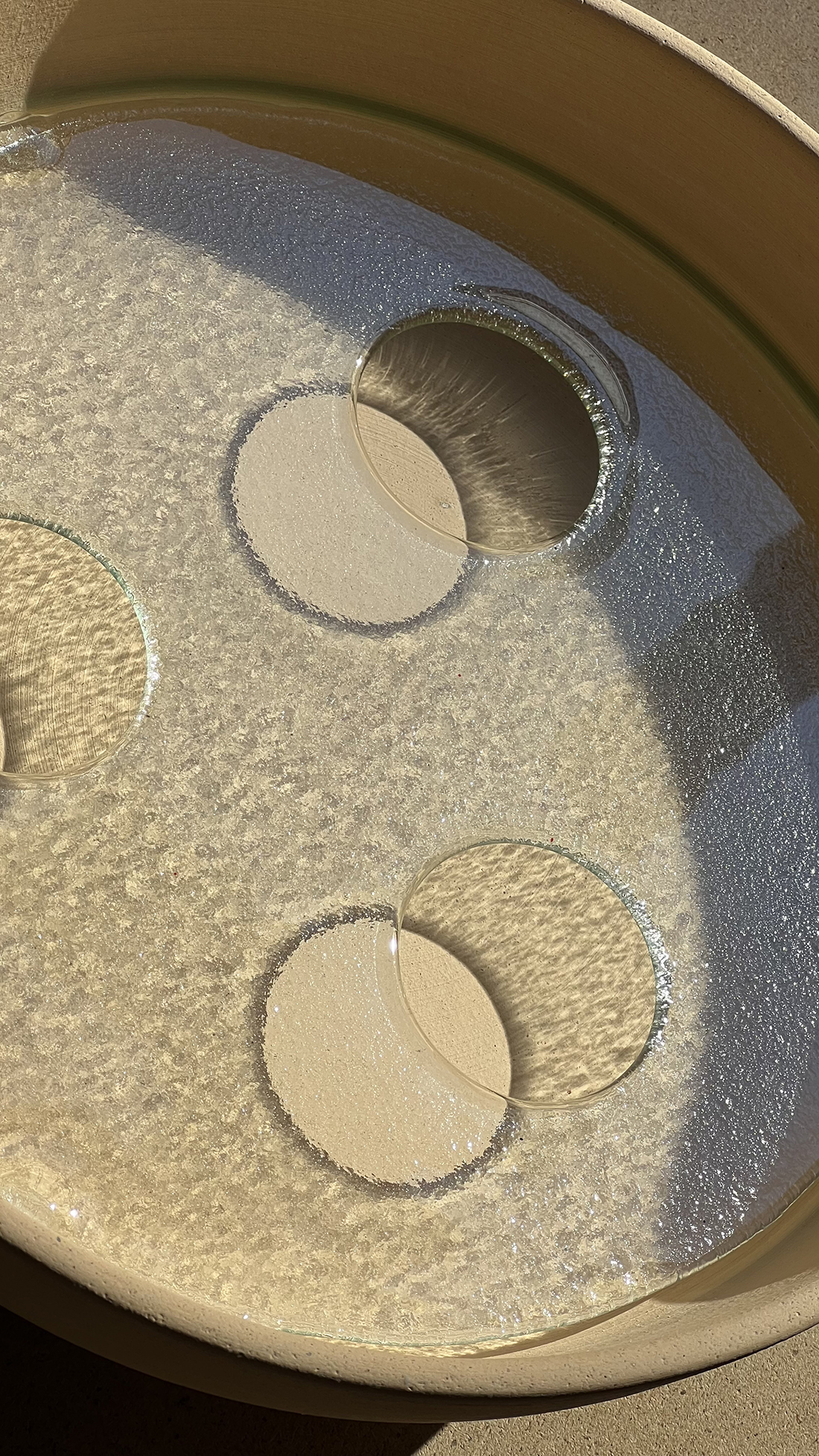 Vassa is produced by hand. Has two elements; ceramic and glass. During the process of baking and glazing, each piece has small, unique flaws that make them more human and present. They can be used, positioned indoor as much as outdoor. Very easy to clean in a dishwasher, if necessary. A handmade product with industrial features.