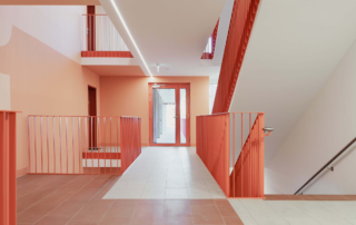 Not only the façade but also the load-bearing elements are made of timber. The company’s products can be seen and experienced inside and out, creating the spectacular external appearance warm atmosphere of the interior.