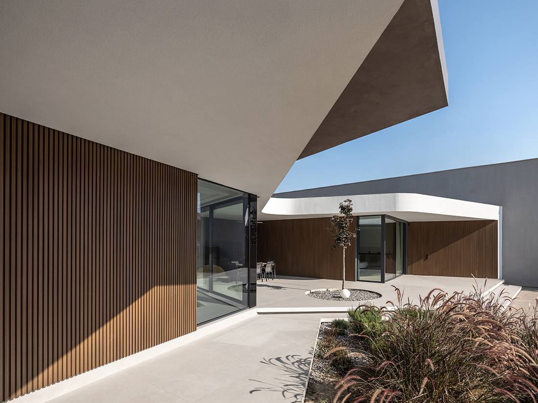 The clean, minimal lines of the design are harmoniously complemented by the richness of the surrounding landscape.