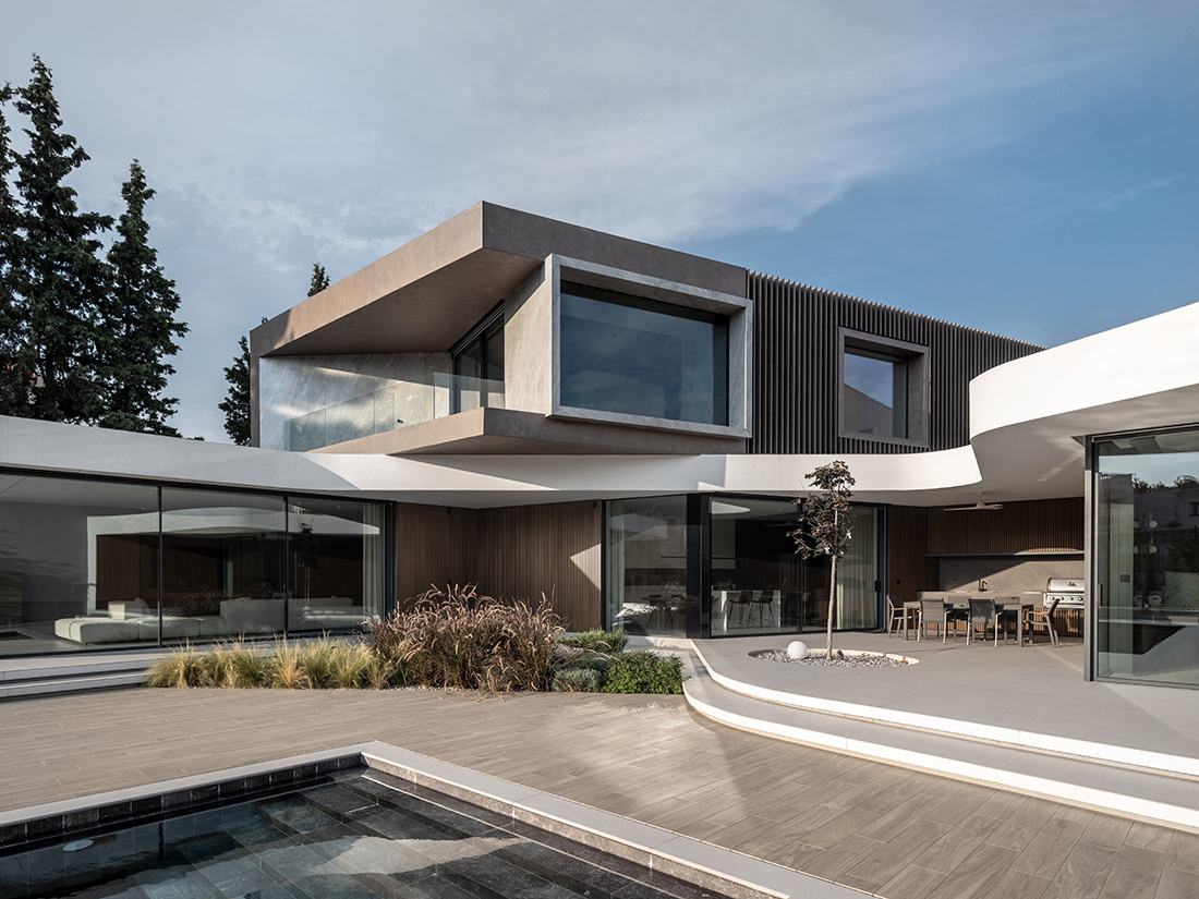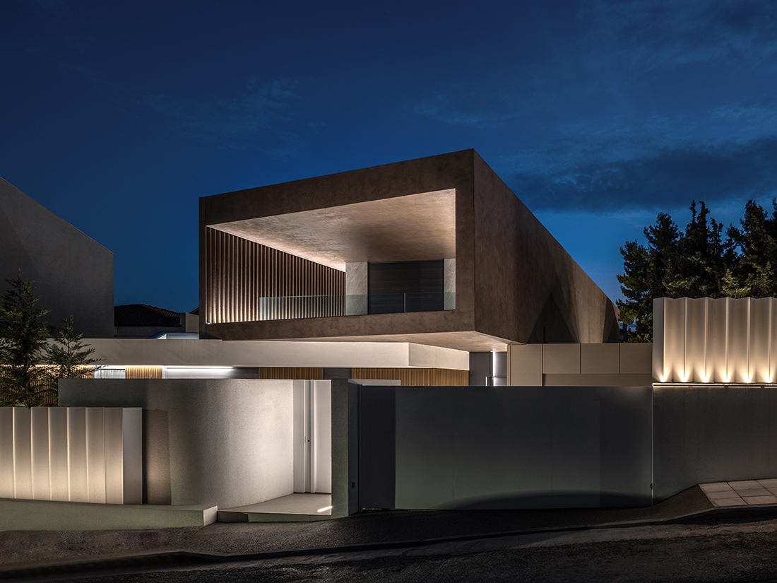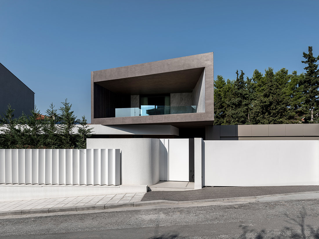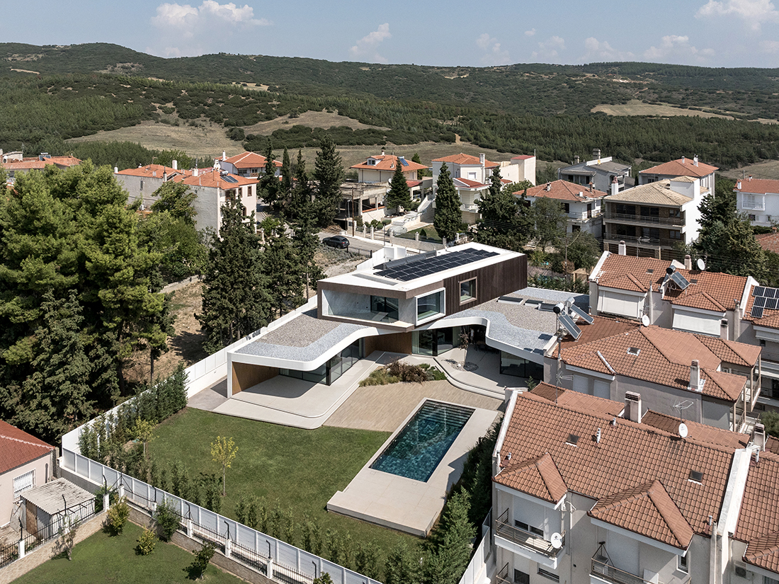 Nestled in the suburbs of Thessaloniki, in Oreokastro, Villa PieL is designed by the Greek architectural office Ark4lab of Architecture. The building spans two levels, aligned along a linear axis, with the volume’s form reflecting the different functions of the space.
