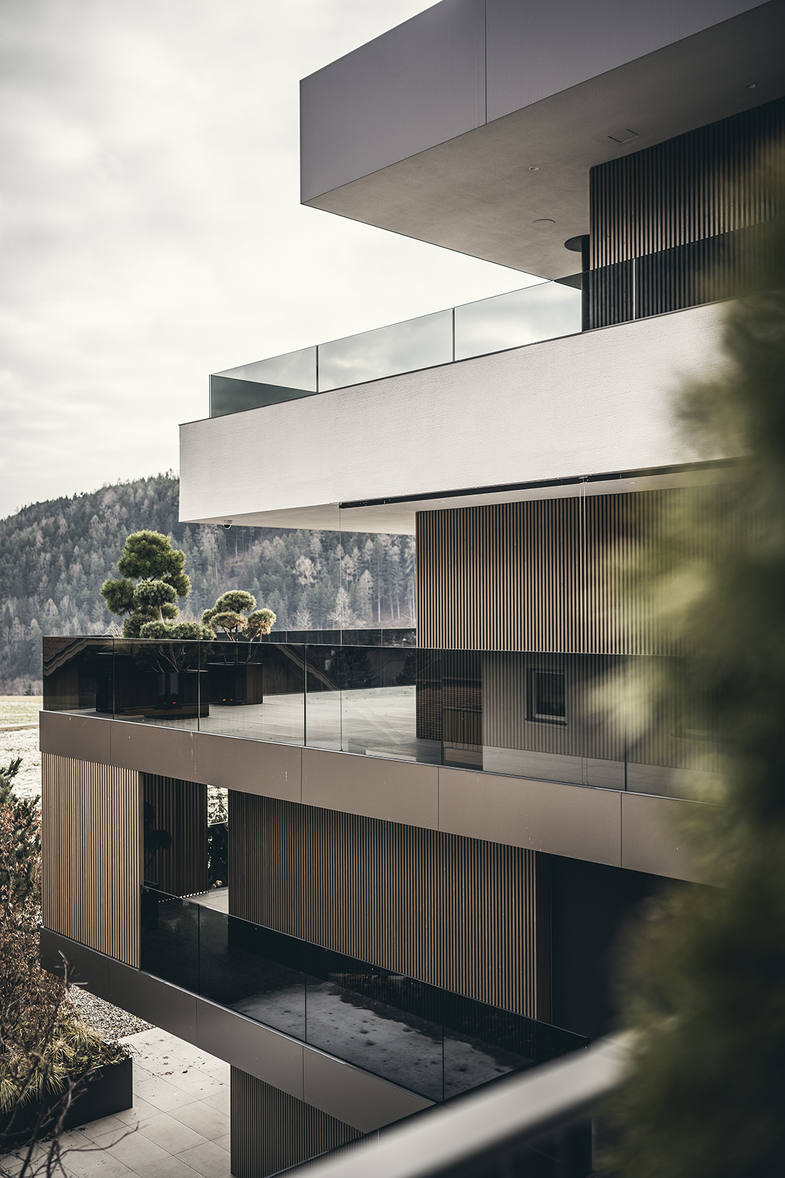 This residential building blends modern design with local architectural traditions to create a harmonious and sustainable living space. It consists of three apartments, ranging in size from 105 to 140 m², each with terrace areas, as well as a basement that includes underground parking spaces and storage rooms.