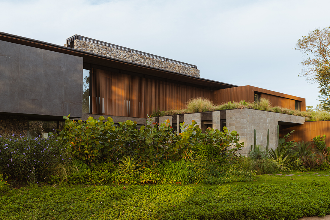 The house embodies an architectural narrative that draws from the terrain and topography, while embracing expansive views of the Pacific Ocean. A defining feature of Casa Yume is its site design, and the way the architecture responds to the landscape. The house is positioned on a sloped plot overlooking the horizon, and the design takes advantage of this topography by creating a seamless visual and spatial connection between indoor and outdoor areas. The project is anchored by a geometric structure, whose spatial organization is informed by a single strong diagonal axis.