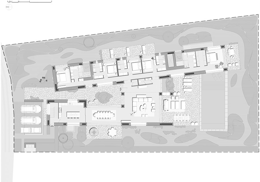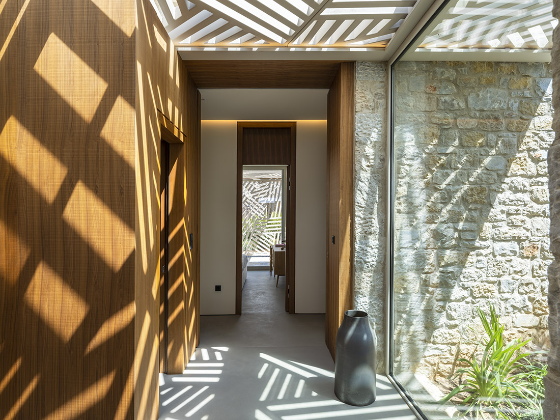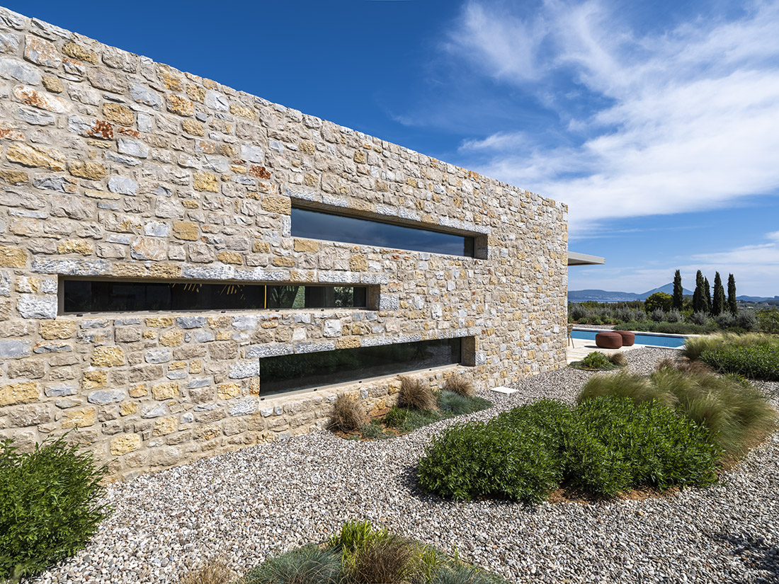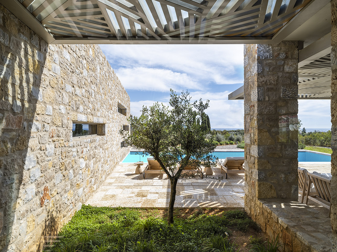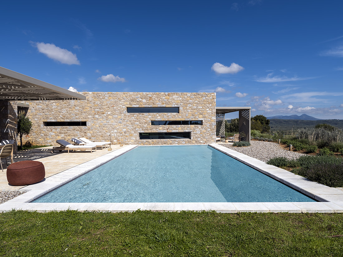 The design concept of the two neighboring villas is driven by the dialectical relationships forming the triptych of nature, memory, and form. At the core of this project’s approach lies the olive tree as a compositional center of gravity, while its enveloping volumes — alluding to those of a traditional olive press factory — set an earthy scene.
