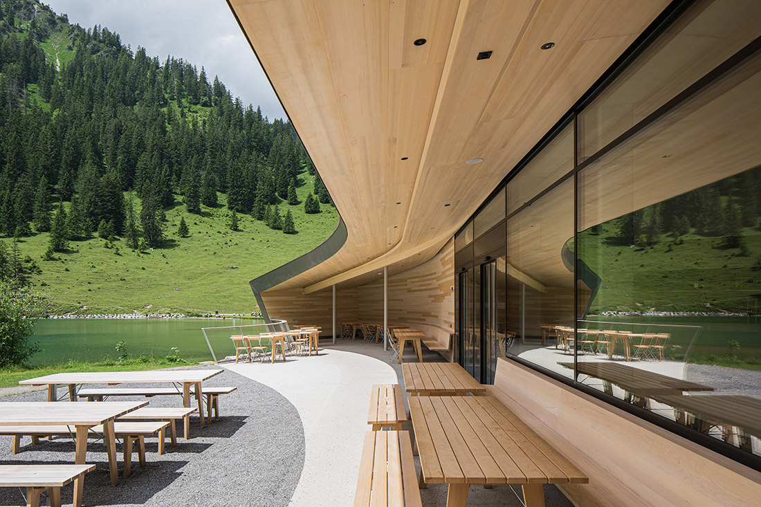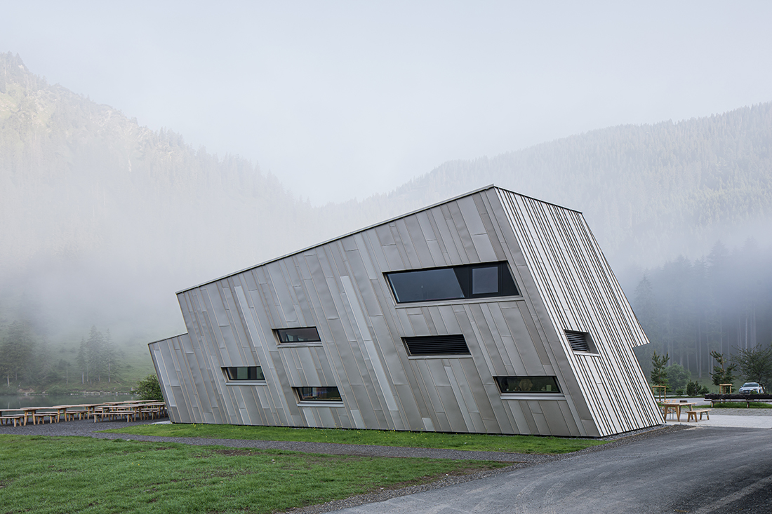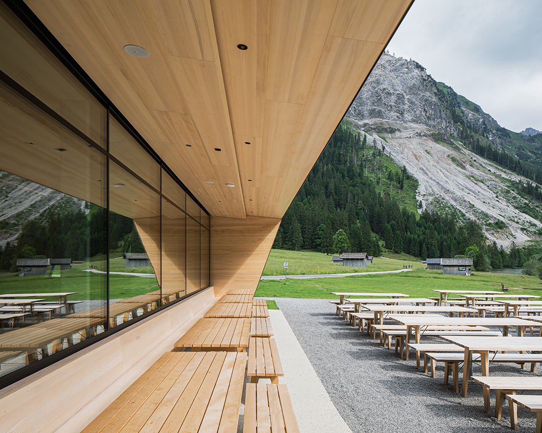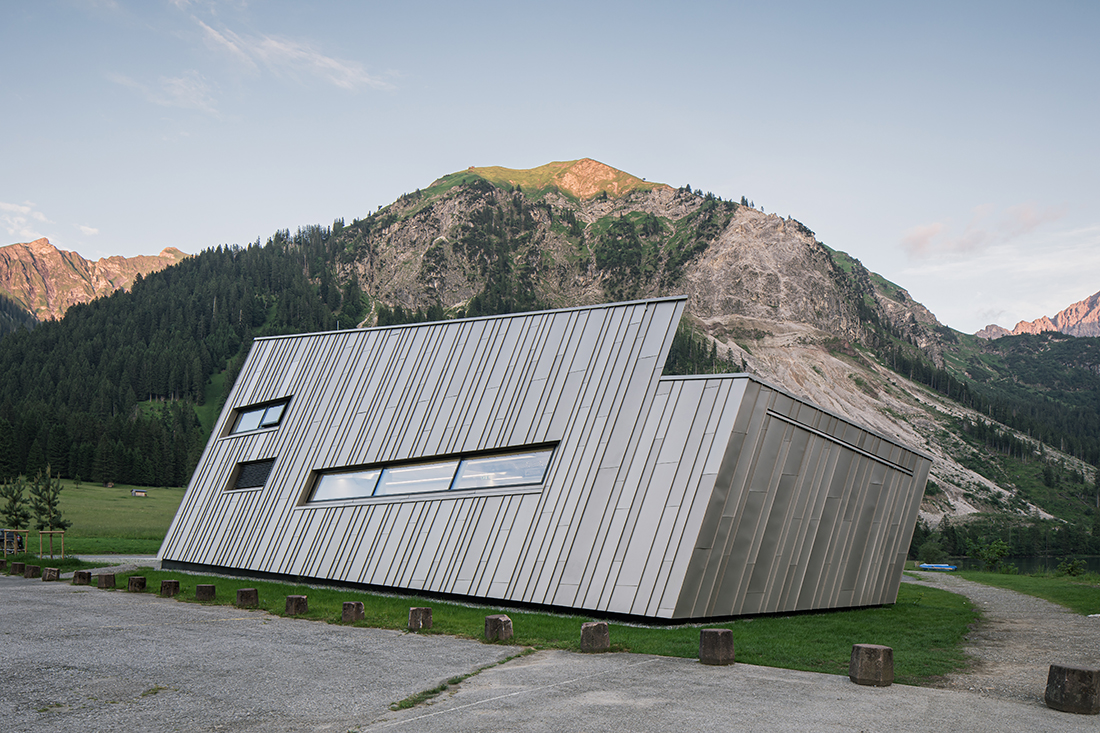 The Vilsalpsee Restaurant is surrounded by a largely untouched landscape in the middle of a nature reserve. The horizontality of the water level and the steeply rising rock formations are the defining elements that make this place so special. The building seeks to bring these apparent opposites into a symbiotic relationship.