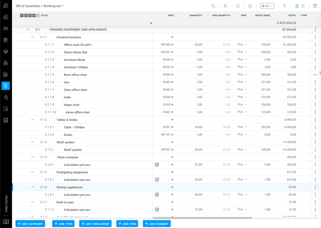 The Bill of Quantities (BoQ) module in VOLUM3 is meticulously crafted to provide real-time tracking of project costs. Seamlessly integrated with your project specifications, it offers a unique feature: utilizing specifications for precise descriptions and directly integrating the entire BoQ into tender processes. This collaborative tool allows multiple consultants to simultaneously contribute to and refine the BoQ, ensuring comprehensive and efficient project management. Below, discover comprehensive instructions and insightful tips for leveraging the BoQ module effectively.
