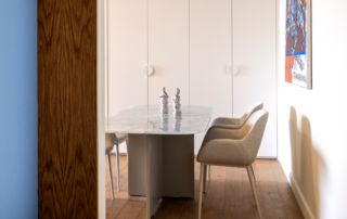 The property is situated in the East part of the island facing the island of Naxos. The plot is a steep olive grove. Earth is retained by dry stone walls which look like threads on the ground looking from above. The concept is to weave with the existing landscape, creating the minimum disrupt. A barrier is created by the body of the building that protects the South courtyards from the violent North winds creating a micro clime. In order to form this protective barrier the building is stretching out and its various thresholds are adapted to the different earth levels. Three old olive trees become “very important” dominating the courtyards, organizing life around them. The house becomes the canvas for the promotion of the natural. The house’s size is 240m2. The main house comprises of a kitchen, a living room and 2 master bedrooms. An interior escalated corridor unifies the different spaces which correspond to different levels and courtyards. A guest room with an exterior access is attached to this volume. At the kitchen’s courtyard and around one of the “prominent” olive trees an outdoor barbeque space with a pergola is created. A stone wall protects the bbq space from the North winds. From this space and towards East two distinct buildings are evolving escalating downwards. They host storage, an extra guest room and a double height space with a mezzanine for the family’s children and their friends. The house comprises with the bioclimatic premise of our times. The water from the terraces is gathered in a reservoir, filtered and reused. All spaces are naturally cross ventilated. The stone retaining walls are constructed with a dry manner, without mortar, as the old. The stones come from the plot’s excavation; their colors match the earth. The “random” form of the retaining walls which lay like threads on the ground are getting striated at the area of the intervention to form the courtyards, the different stages where the act of the family life is taking place. The house creates a patchwork of rectangles weaving with nature.