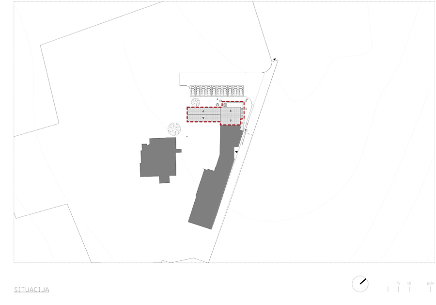 The wellness addition to Stancija Baracija is situated in the northern area and spatially completes the existing complex by adding a private courtyard that contrasts in character with the open vineyards surrounding the Stancija. The volumes are traditional in composition and form, continuing and completing the previously refurbished original building from the early 20th century.