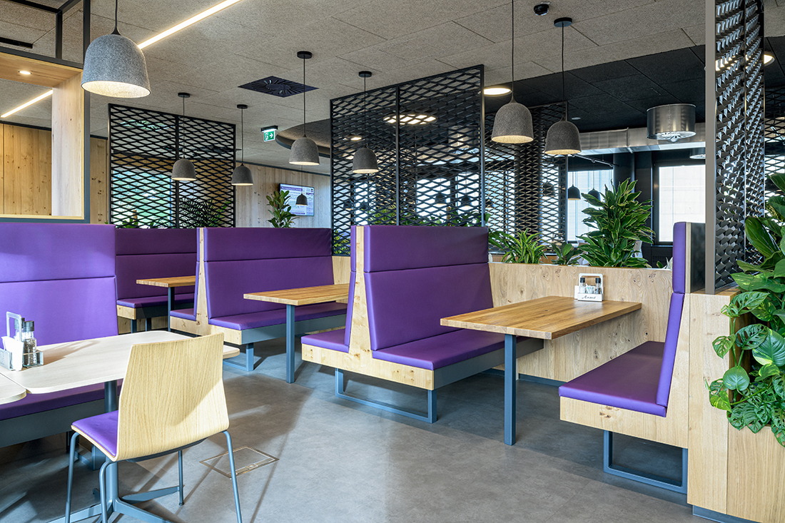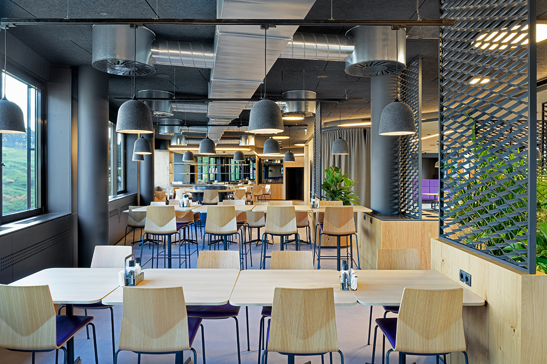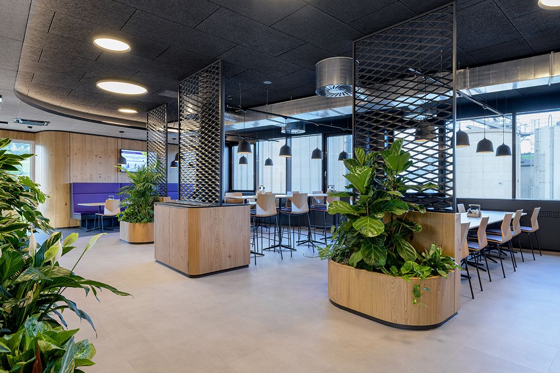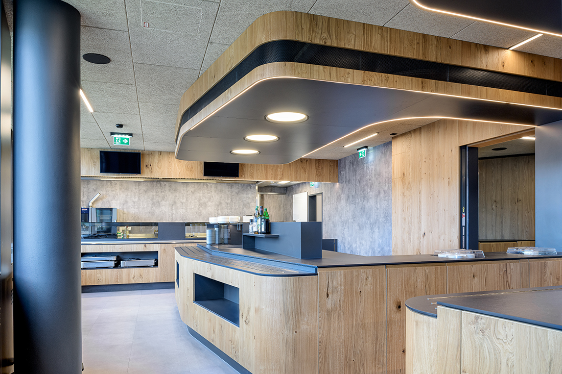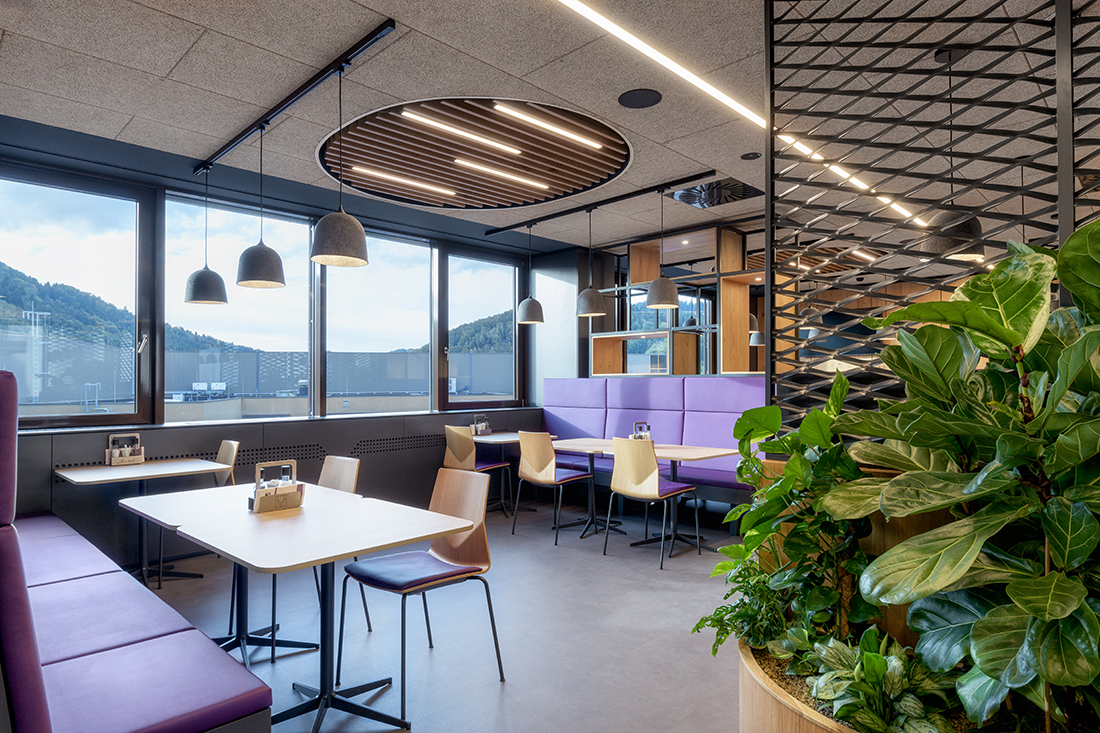 In order to increase the well-being of its employees and to offer more value, Welser Profile Austria decided to offer freshly cooked food in the company. However, they did not want to create just a cafeteria; they decided to create a real restaurant, and that is how we came across the opportunity to design it. Instead of building a new building, thanks to the new work processes that Welser has implemented in recent years, we found a way during the project development to convert an existing office level into a company restaurant, including a full kitchen.