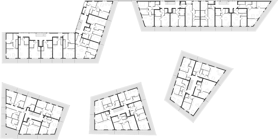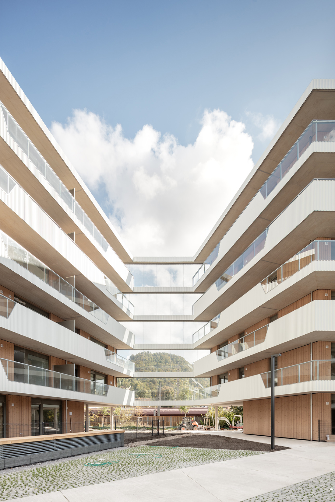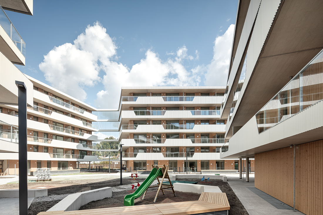 The residential complex accommodates a diverse mix of functions: subsidized rental units, privately owned residences, and assisted living spaces for the elderly and individuals with special needs. Wraparound balconies extend the living experience outdoors, enhancing the spatial quality of more compact units – particularly within the assisted living groups. Shared care and communal spaces foster a supportive, socially inclusive environment, reflecting the project’s commitment to accessibility, integration, and wellbeing.
