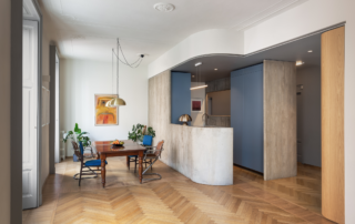 The architectural space of the restaurant is made up of unexpected diagonals that forcefully split the shell, opening its most intimate part – a central concave space exposed to the south – to nature, with the wood insinuating itself into the building. And the building, symbiotically, becomes an enveloping form that protects nature and draws the visitor’s eye to connect with it, where the wooden deck becomes the stage for oaks and birch trees.