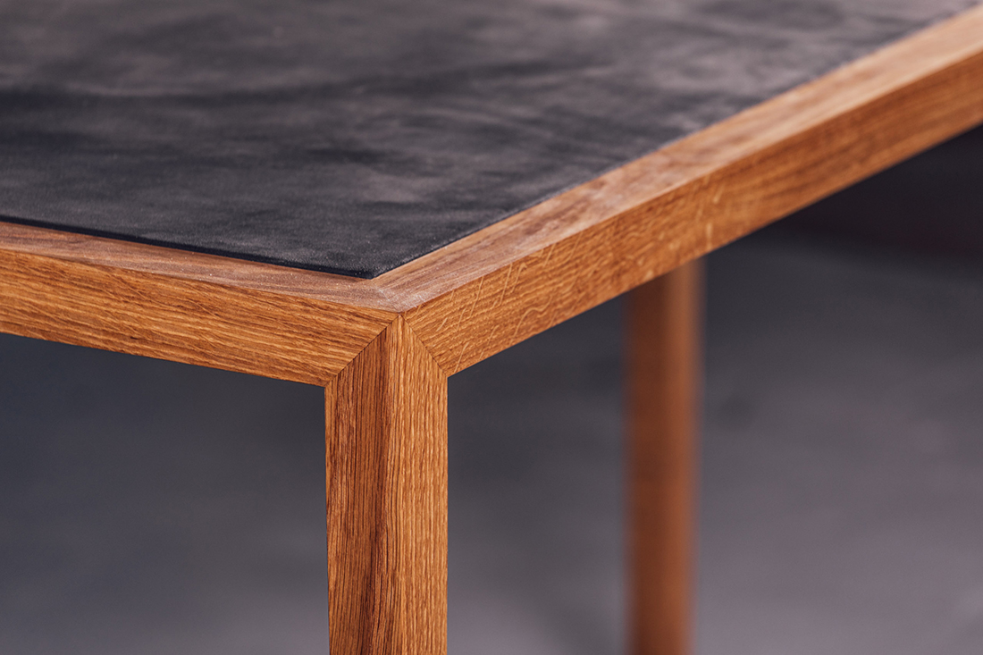 An elegant work table with clean lines, crafted from high-quality solid oak. At its centre, the tabletop features a finely recessed leather inlay that enhances both aesthetics and functionality. With its timeless design, it integrates seamlessly into both modern and classic interiors. Ideal for home offices, studios, or creative workspaces, the table is handcrafted to ensure superior quality and long-lasting durability.