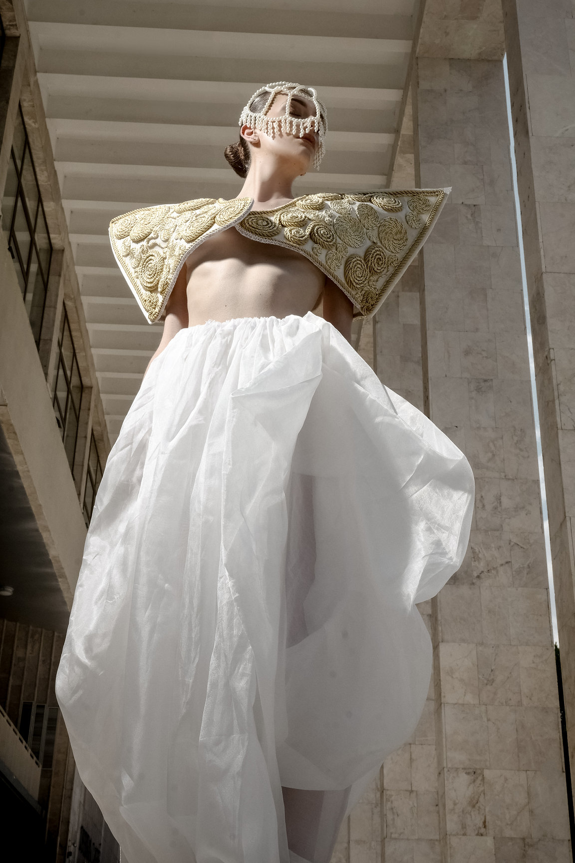 Xheksil Muça has consistently demonstrated work of high artistic value, marked by a rare ability to transform material, memory, and cultural reference into a coherent and deeply poetic visual language. His latest collection, developed through a series of white artistic garments, emerges from a profound need to engage with identity as a living memory, an entity that breathes, transforms, and persists through time.