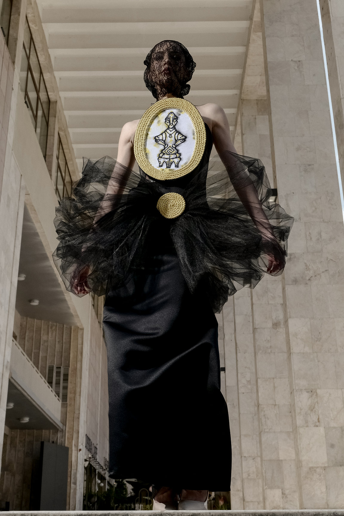 The inspiration for this collection came from the legends of the cities of Albania, which have been told by our grandparents until today. Each dress represents a city and a legend. As a connecting accessory between these looks, I have chosen a very ancient motif related to Illyria (the origin of Albanians). This motif is in the form of a round spiral, made of metal and is found on the hems of Illyrian garments; and it is thought to represent the "sun". The materials used in these dresses are: tulle, puffer material, silk, satin, spiral cords and pearls. The goal of this collection was to stay as close as possible between the folklore and modernity at the same time.
