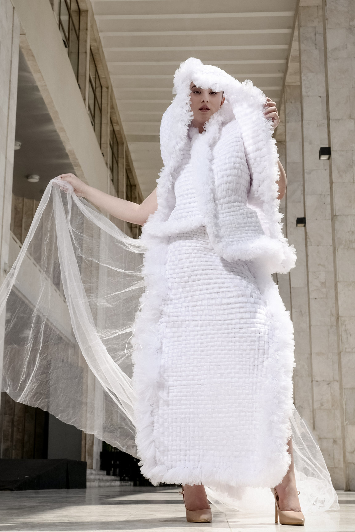 "The Brides" is my first collection created as part of my Bachelor's degree collection. It was first presented at "Feeric Fashion Week" in Sibiu/Romania in June 2024. My inspiration for this collection came from the traditional bridal dress of Mirdita (a mountainous area in northern Albania), called "Xhoka". The materials used for these dresses are: tulle (woven with ribbons on a loom), industrial felt and spiral cords. I considered this collection as a work of art. The main goal of this collection was to use folkloric motifs and turn them into modern ones, to create a bridge between the past and the present at the same time.
