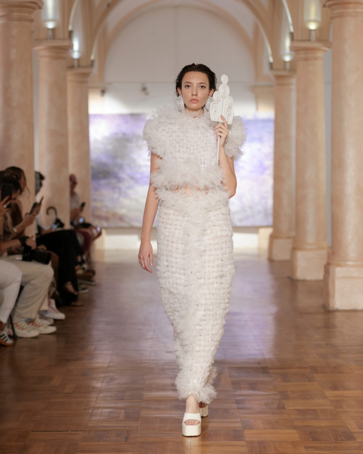 The choice of white is not merely chromatic, but conceptual. It appears as silence and soft light, a symbol of purity and introspection, a space where traces of the past are preserved, and layers of history are patiently constructed. In this collection, folklore is not quoted or imitated; it is felt. It exists as an inner resonance rather than an external reference, allowing tradition to speak through sensation, texture, and form.
